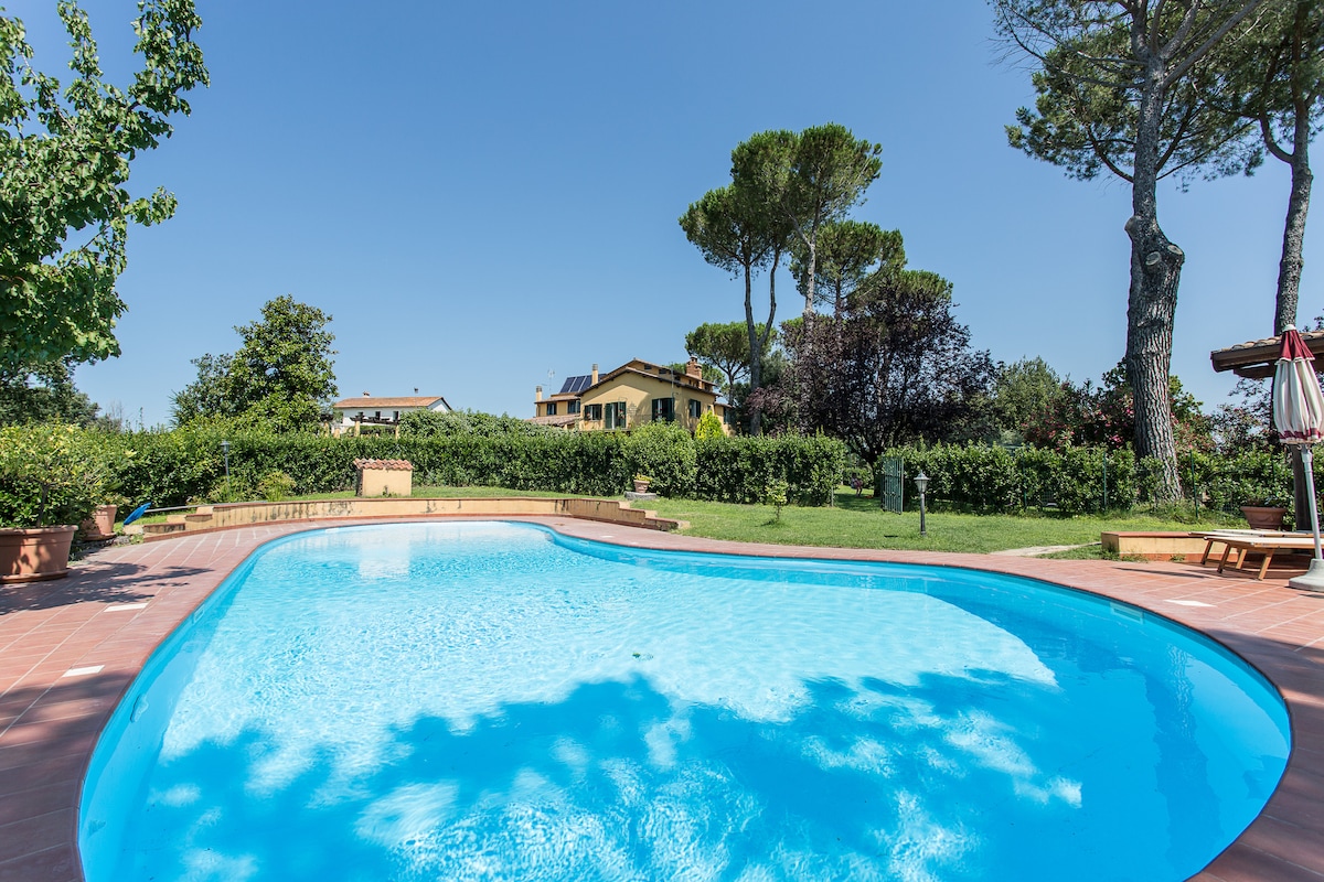 Villa Pupí is a country house surrounded by greenery. 2km from Trevignano Romano, the lake beach 10 minutes on foot. It is surrounded by a large park with swimming pool, an olive grove and a panoramic terrace. It has 4 bedrooms and can accommodate up to 6 guests. We invite you to enjoy this relaxing space: for time in the pool and for the shade under the trees, for a barbecue with friends or to visit the archaeological sites in the surrounding area or even reach Rome in an hour.