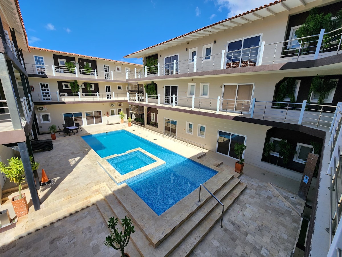 Relájate con toda la familia en este tranquilo lugar para quedarse. Una cuadra de la playa con una hermosa piscina cuartos amplios y cómodos 2 puestos de estacionamiento Cerca de toda la área turística excelente sitio ideal para hacer parrillas y pasar un excelente día