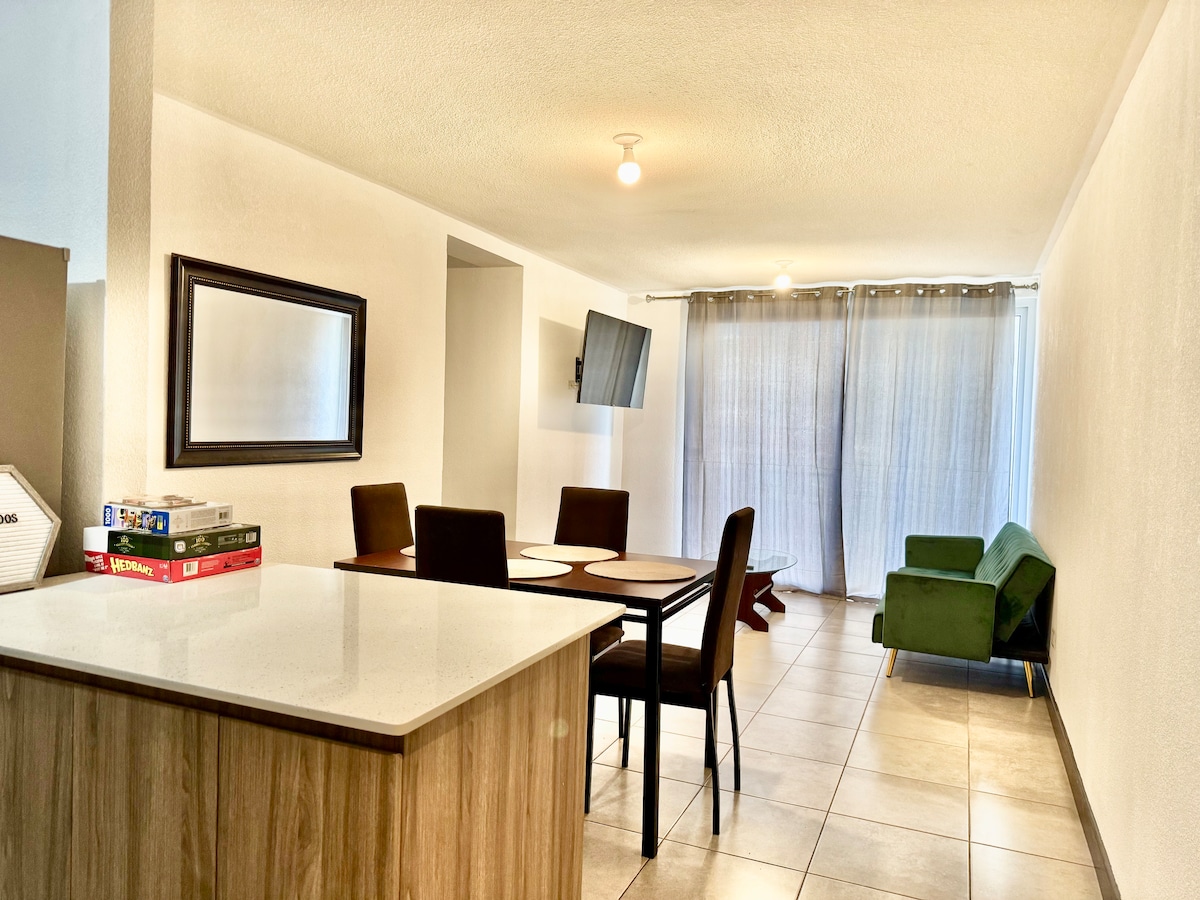 Apartamento cómodo, equipado y céntrico, es perfecto para viajes de trabajo o descanso. Ubicado en condominio seguro, con canchas deportivas, áreas verdes, a solo 5 minutos del C.C. El Frutal y con fácil acceso a las principales rutas hacia la Ciudad, Carretera a El Salvador y Antigua Guatemala.