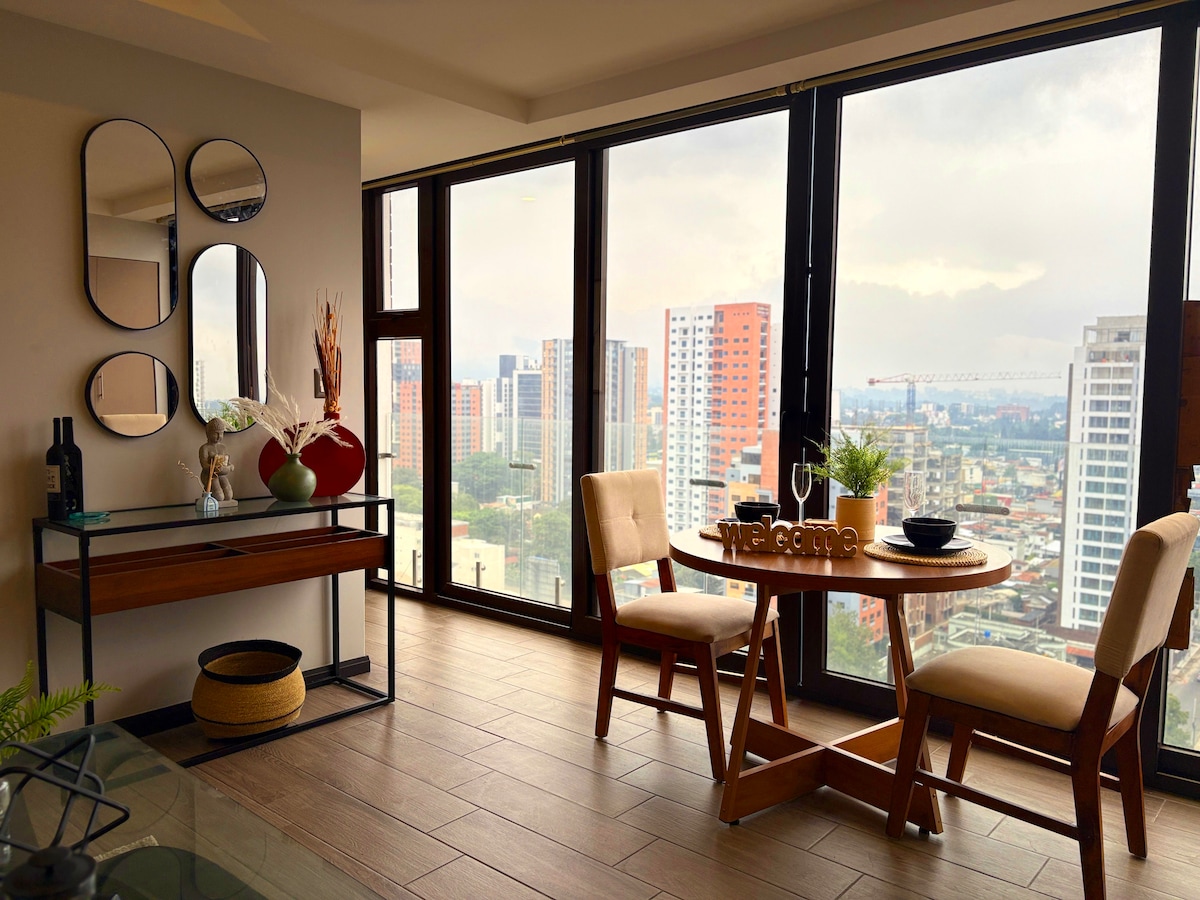 Apartamento entero tipo Loft. Cuenta con una hermosa terraza, 1 dormitorio abierto con cama Queen y A/C, baño privado , sala, comedor y cocineta totalmente equipada, lavadora y secadora de ropa. Con smart TV de 58" para entretenimiento y wifi. Incluye 1 parqueo gratuito en las instalaciones.