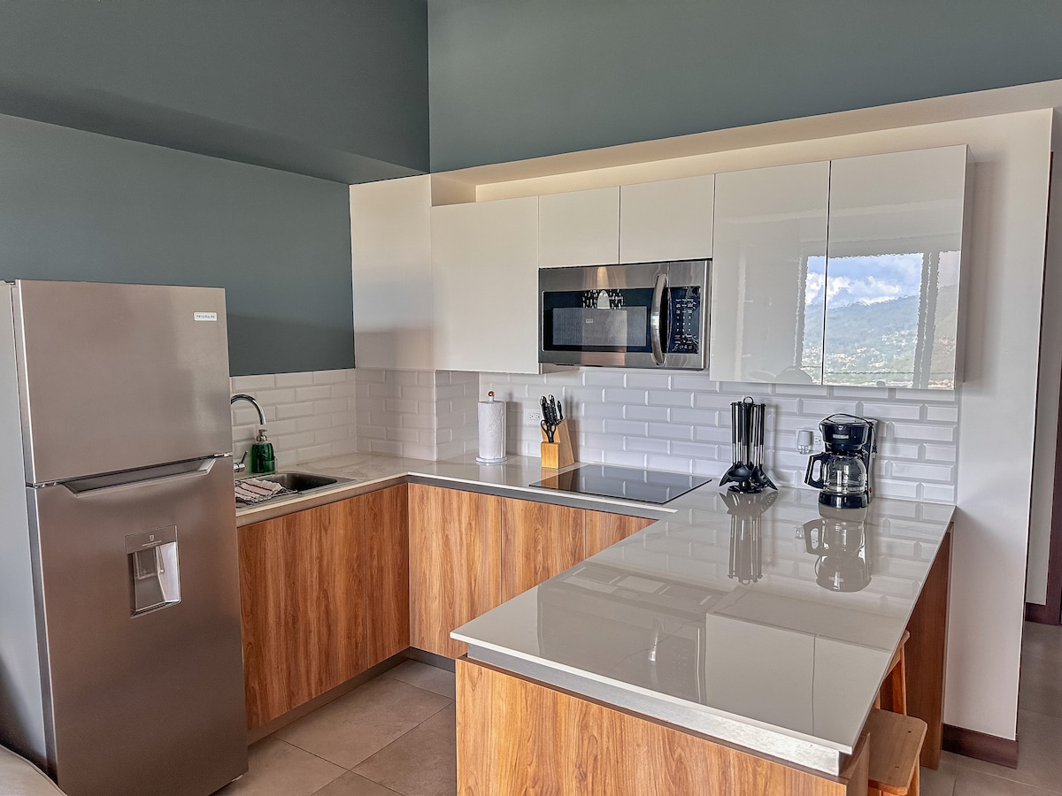 Apartamento entero tipo Loft. Cuenta con una hermosa terraza, 1 dormitorio abierto con cama Queen y A/C, baño privado , sala, comedor y cocineta totalmente equipada, lavadora y secadora de ropa. Con smart TV de 58" para entretenimiento y wifi. Incluye 1 parqueo gratuito en las instalaciones.