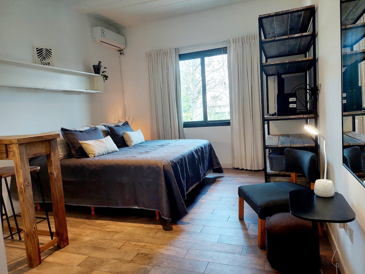 Brand new studio in the heart of Palermo Hollywood, featuring a full kitchen, private bathroom, and balcony with great views. Modern decor, fully equipped, and secure. Includes a SmartTV with cable and Netflix (login with your account). The building offers excellent amenities: heated indoor pool, outdoor pool with solarium, spa with massage room and sauna, gym, terraces, meeting room, and BBQ area. Within walking distance of top restaurants, bars, cafes, and bus, train, and subway stations.