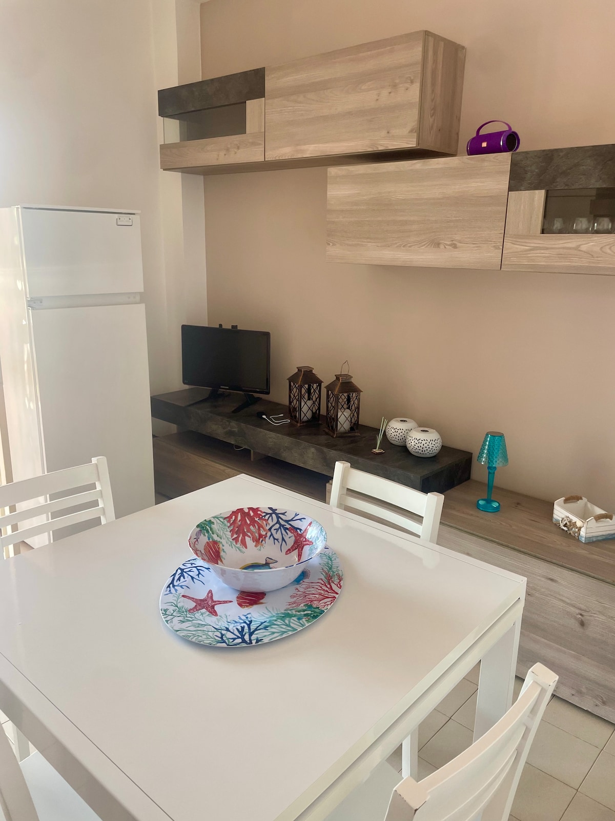 Appartamento a piano terra della nostra casa di residenza, accesso diretto dalla strada statale. È dotato di cucina, climatizzatore, stufa radiante, lavatrice, TV, Wi-Fi, ambiente esterno con tavolo, sedie, barbecue e lavabo. Comodo per tre persone, possibilità di aggiungere il quarto posto letto. A disposizione due biciclette per raggiungere la spiaggia, distante poco più di 500 metri, passeggiare sul lungomare o fare compere nel centro cittadino. Disponibile parcheggio privato semi coperto.