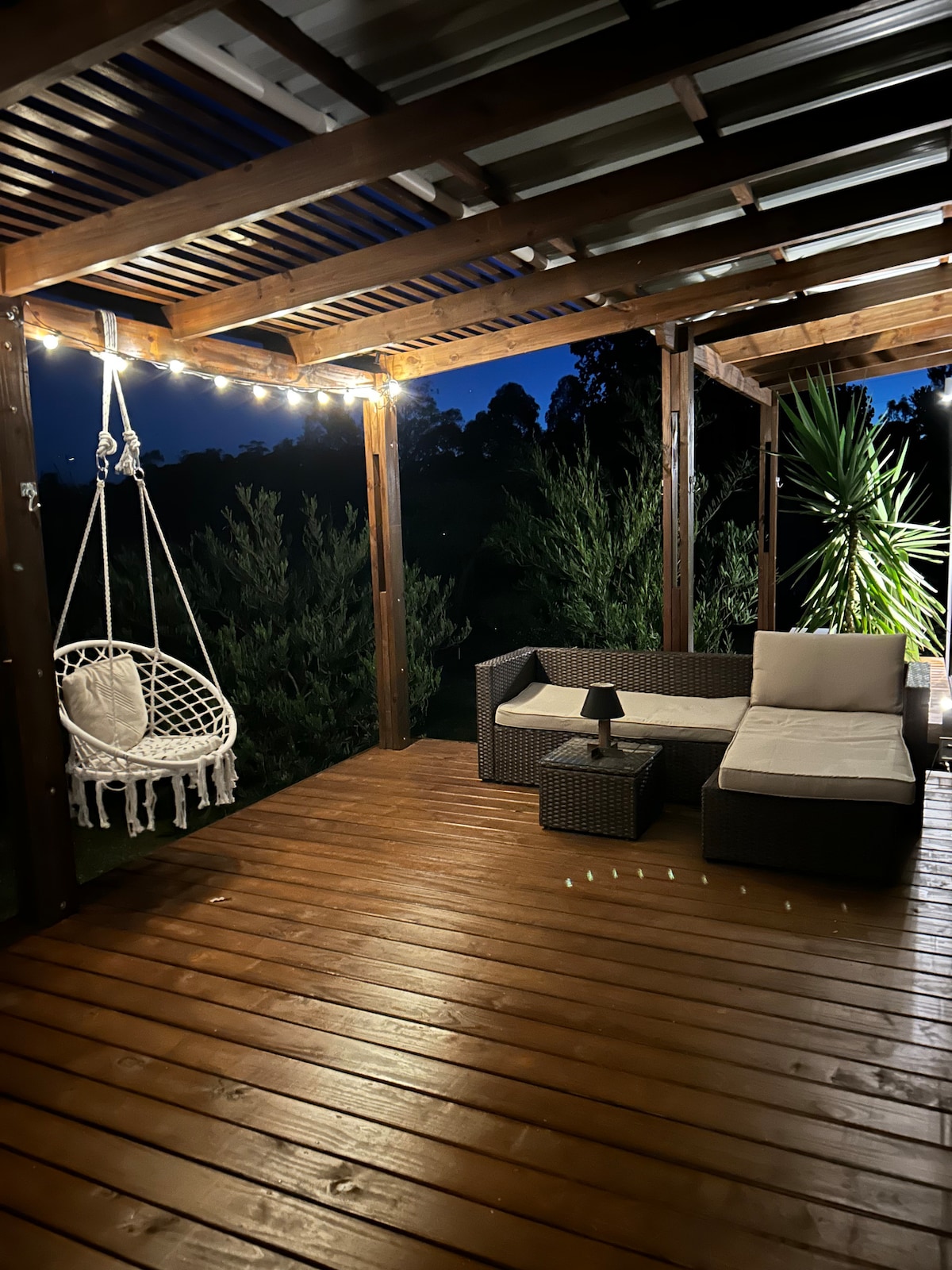 La casa ofrece mucha comodidad y privacidad, lo que permite desconectarse y disfrutar de excelentes vistas y espectaculares atardeceres, al estar ubicada en un punto único, sin casas por delante y con pocas casas vecinas (aspecto que la distingue). Cuenta con excelente presencia de sol, al estar orientada al norte. Dispone de una tina nórdica, ideal para refrescarse en verano y relajarse en cualquier época del año, ya que cuenta con caldera a leña para calentar el agua.