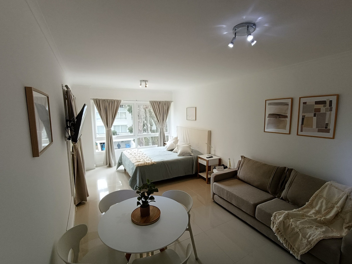 Greenpark II Un ambiente grande , divisible y con pequeña terraza disfruta de tener todo en orden, limpio sin preocuparte LA CRYSTAL SE PAGA APARTE PISCINAS CLIMATIZADAS , GYM sauna y amenities ESTÁN INCLUIDOS Espacios comunes con parrillas ( pedir elementos para el asado) Todo para cocinar, ollas sartenes , vajilla (No hay alimentos) EXCELENTE wi fi Estacionamiento Restaurante, y SUSHI PROMOS POR FINES DE SEMANA DESCUENTOS POR EVENTOS Enero y febrero hay además Servicio de playa