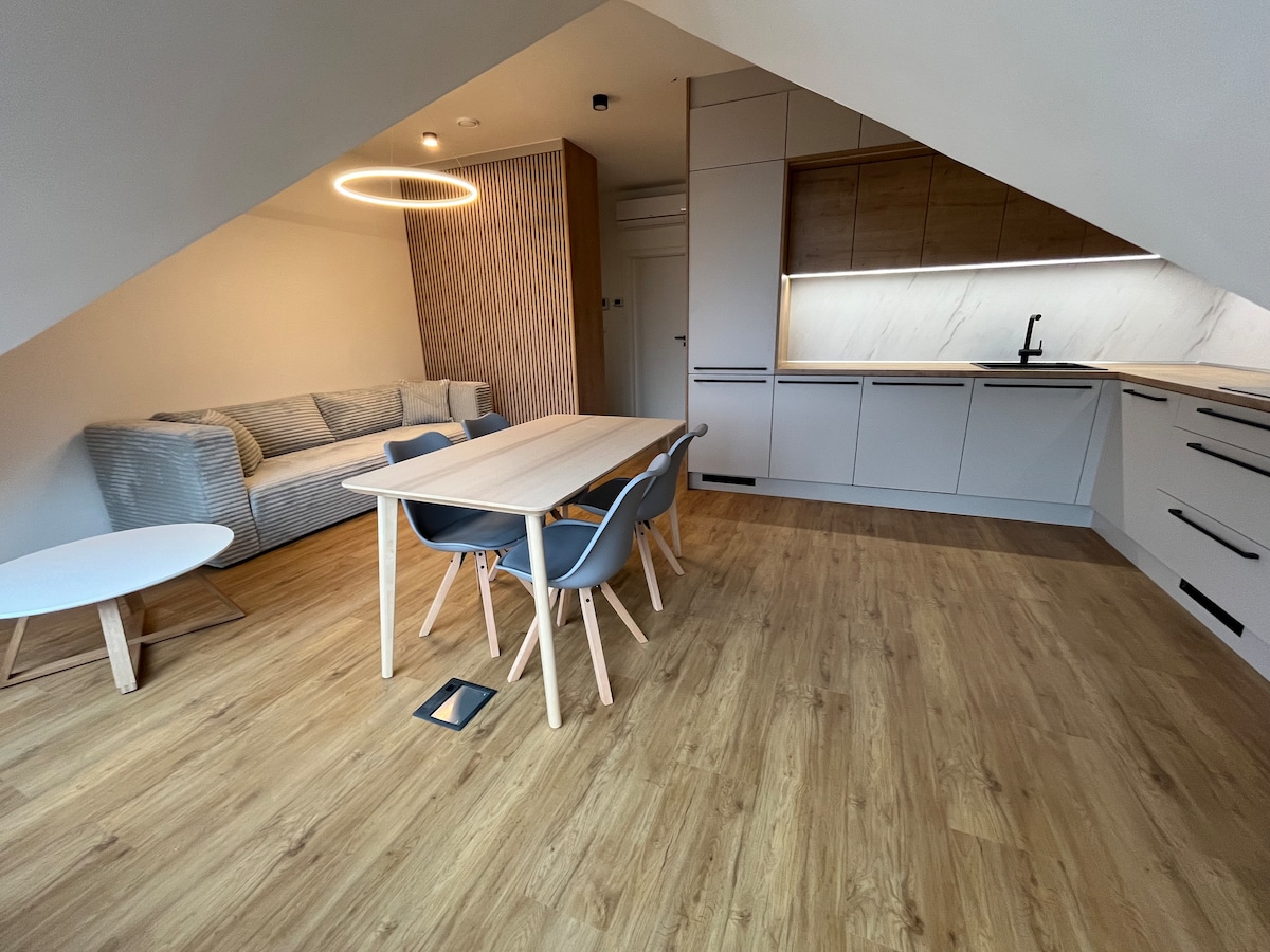 The new air-conditioned attic apartment features a double bed and a sofa bed that provides two additional sleeping areas. Includes a fitted kitchen, bathroom with shower, washing machine, hairdryer and iron. The whole apartment is covered with high-speed wifi. Cable TV is available, including HBO. Nearby is the restaurant Svatoboj, food, a popular cycle path with beautiful nature and one of the best wellness in Brno - 4comfort. We offer self-check-in!