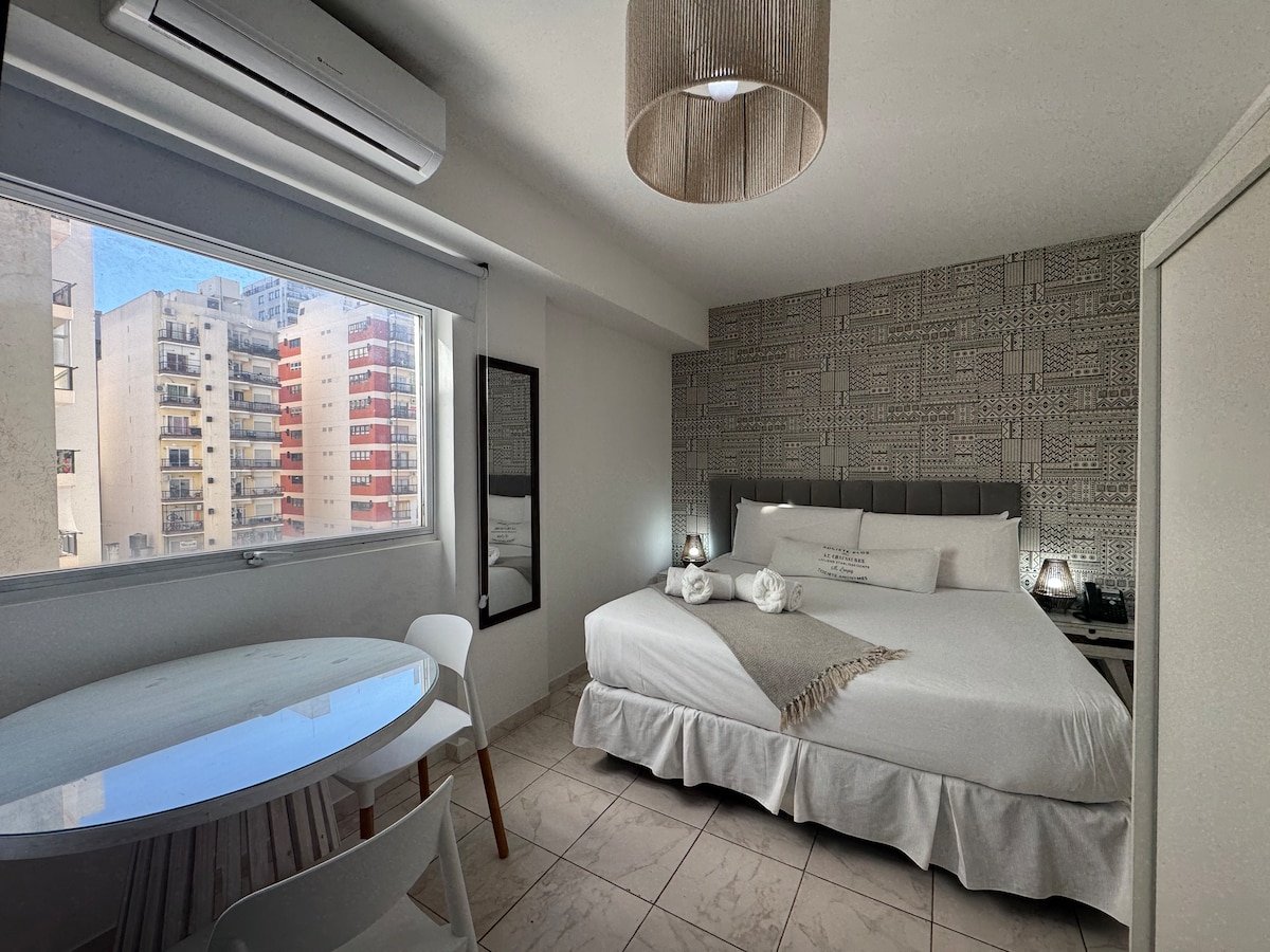Apartamento de 2 ambientes en el espectacular complejo Green Haus Belgrano en el polo gastronómico doho. Seguridad 24 hs. Full amenities. PISCINA CUBIERTA climatizada todo el año y descubierta en verano, quincho, Gimnasio, área de niños. Wifi de 300 MB máxima velocidad, Ideal para trabajo remoto. Capacidad hasta 4 huéspedes. Descuento para estadías largas. Cochera disponible con costo adicional Acceso con cerradura digital