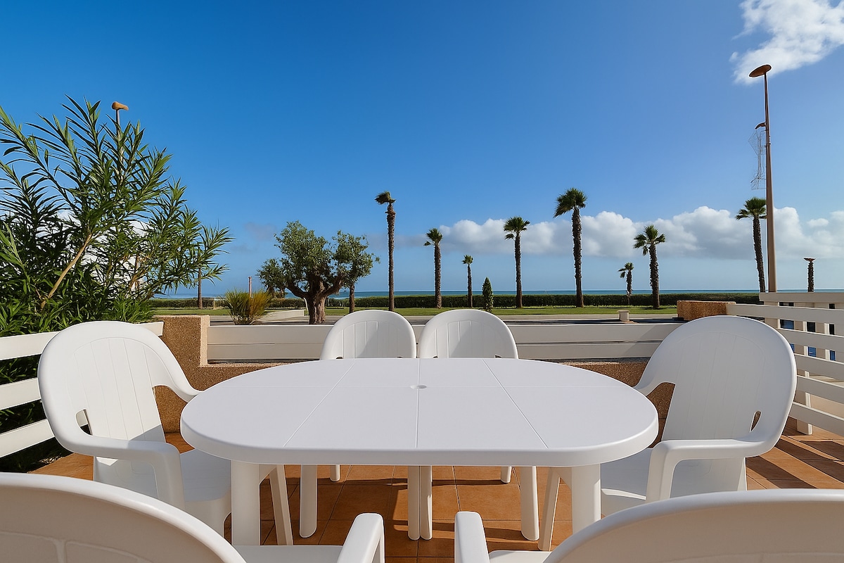 Profitez d’un appartement baigné de lumière avec sa terrasse face à la mer et la plage, sans vis à vis. Appartement 2 pièces d'environ 30 m2, terrasse 10 m2 et place de parking privative. Prestations de confort dans un style moderne et épuré. Il est situé au 2è étage (sans ascenseur) d’une résidence très calme. Le linge est fourni (lit + toilette). Literie récente (2024) 140x190. 2 TV. WIFI (fibre). Idéal pour 2 personnes
