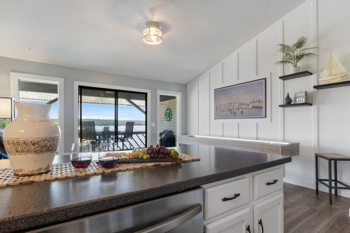 * Lakefront*Unobstructed Views*Newly Remodelled*New Furnishings*Lighted ShuffleBoard*65" Frame TV* New King Size Bed*Covered Patio*New Appliances*Updated Bathroom*High Speed Internet*Cable TV Traveling with friends or need more room to spread out? We’ve got you covered. Just downstairs, we also host a separate 2-bedroom, 2-bath unit with its own fireplace, covered patio, and the same incredible lakefront views — perfect for a group trip while still enjoying your own space.