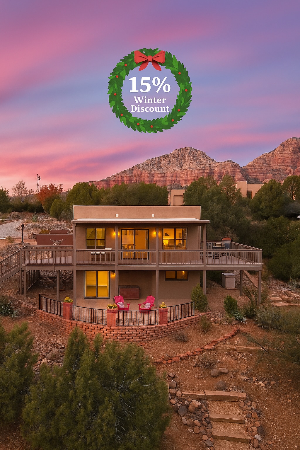 Experience an unforgettable blend of comfort and elegance in the heart of Sedona. Our home, nestled into the hillside, presents unparalleled panoramic views of the iconic red rocks, offering a stunning backdrop throughout your stay. Situated less than a mile from the charming shopping of Tlaquepaque, you'll have easy access to explore. After immersing yourself in the natural wonders of Sedona, rejuvenate in our hot tub, allowing the surrounding beauty to wash away your cares. TPT21331507-SP3256