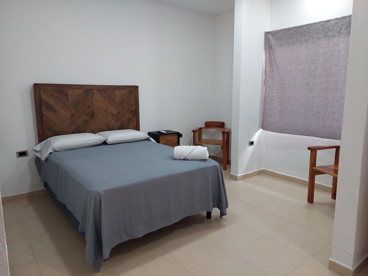 Preciosa habitación nueva y económica para 2 personas. Ubicados en el malecón de la ciudad. Contamos con vigilancia las 24 horas del día, circuito cerrado, además del restaurante ''La cuquita'' donde podrás refrescarte con una cerveza helada La comandancia de Policía esta en contra esquina de nuestro establecimiento por lo que patrullas de policía circulan cada hora, cerca del mercado Pino Suarez y a 8 km del aeropuerto. A escasas cuadras de la central de autobuses ADO.