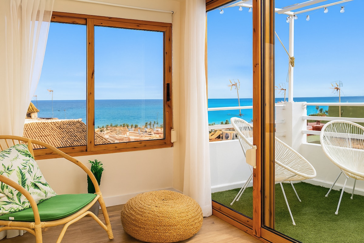 Sobreático céntrico, a 100m de la playa, recién renovado, con una terraza de 25m2 con pérgola y mobiliario de exterior. Las mejores vistas de la ciudad a la playa y la puesta de sol. Con iluminación natural todo el día y sonido relajante de la mar. LGTBI friendly. WIFI.