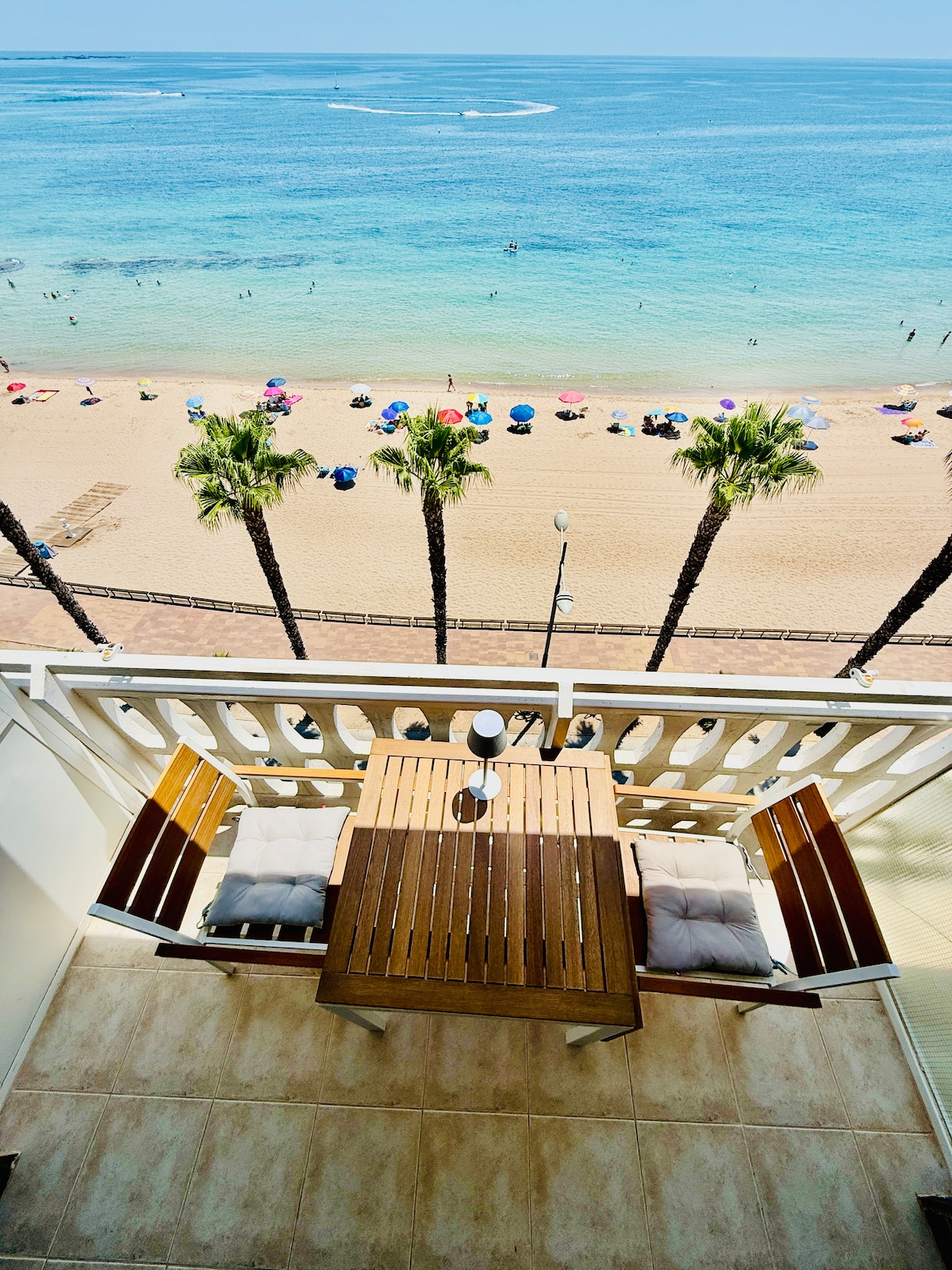 Apartamento en planta baja, a 50 metros de la playa y 150 metros del centro. Mucha claridad, recién reformado, a estrenar! Lugar tranquilo y elegante. Acogedor para familias con hijos, parejas o amigos, y con todo lo necesario para relajarte y desconectar en tus vacaciones junto a la playa.