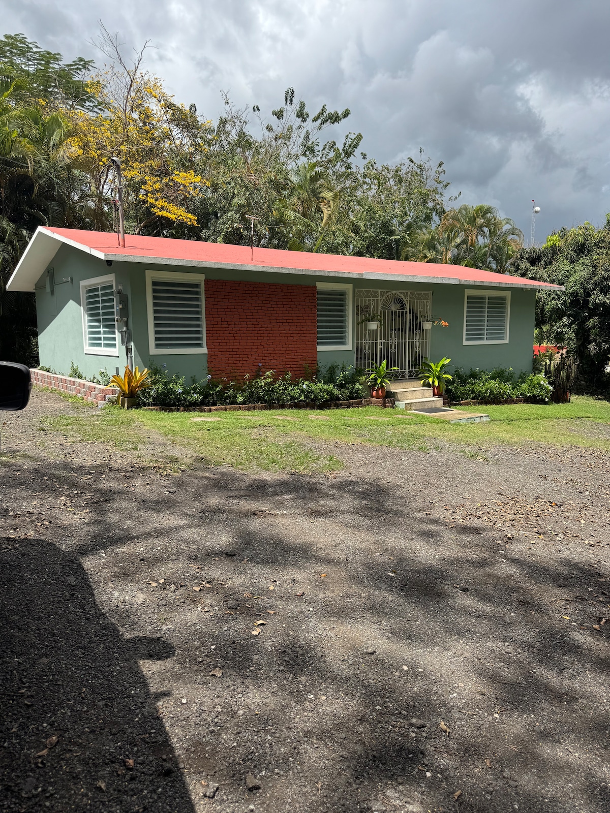 Forget your worries in this spacious and serene place. A complete house with 2 bedrooms and 1-1/2 bathrooms for you and your family with a big yard, to run, play and enjoy natures best greens. Bring your pets and have fun in this beautiful bohemian style space. Very close to the main road PR 150, famous Toa Vaca lake , rivers and Restaurants.
