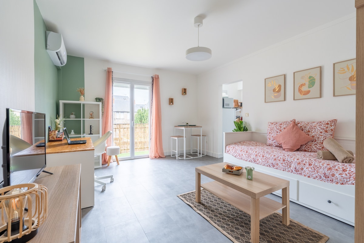 Our 'Garden Retreat' is a tranquil, elegantly furnished cottage overlooking a sunken garden. The accommodation has a bedroom (queen-sized bed), a fully-equipped kitchen, a sitting area with a sleeper-sofa, and a small office mezzanine. The garden is large with multiple places to sit and enjoy the shade or the sun. The Loire River itself is only 150 yards from the flat. Large individuals take note: the shower is a standard 67cm x 67cm. Although we love pets; but we have a one pet only policy.