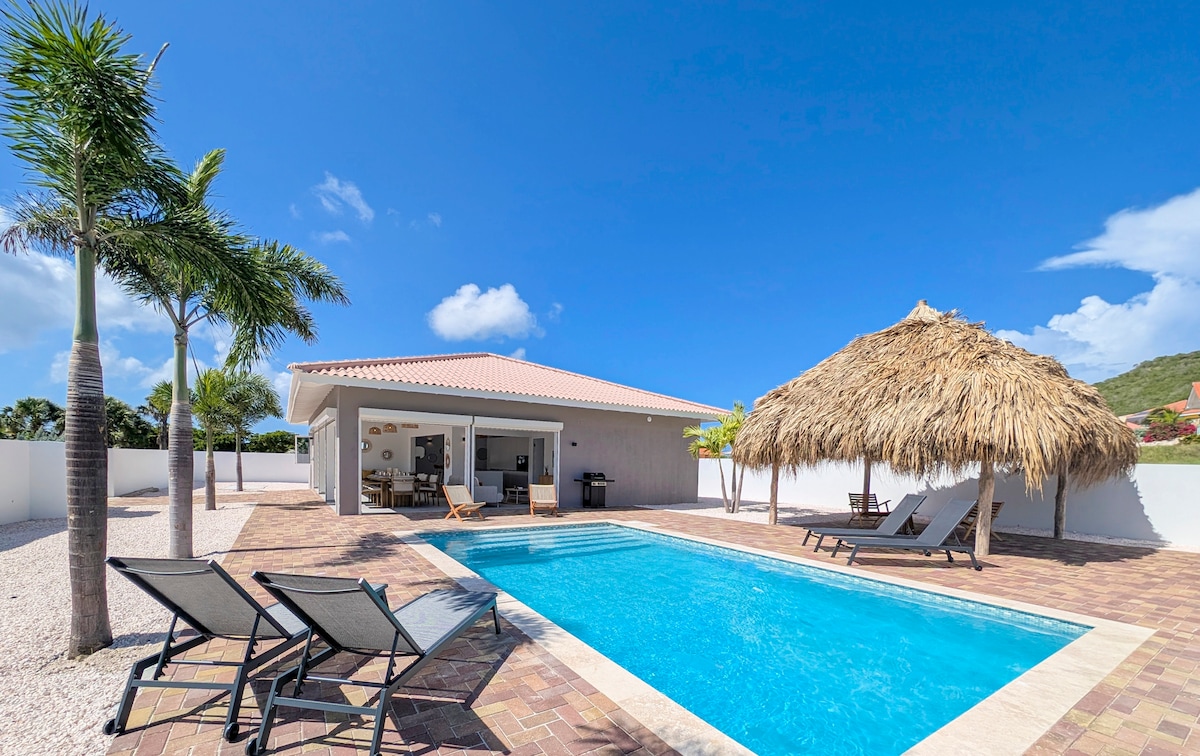 Villa Atardecer – Cherish Every Sunset Enjoy breathtaking sunset views over the hills from this private villa in Banda Abou, Curaçao. Relax in your own pool, dine outdoors on the patio, and soak in the serene beauty of the island. Located in a gated community with 24/7 security, the newly built Villa Atardecer offers comfort, privacy, and unforgettable sunsets every evening. The villa is in close proximity to famous beaches such as Cas Abou, Porto Mari, Playa Lagun and Karakter.