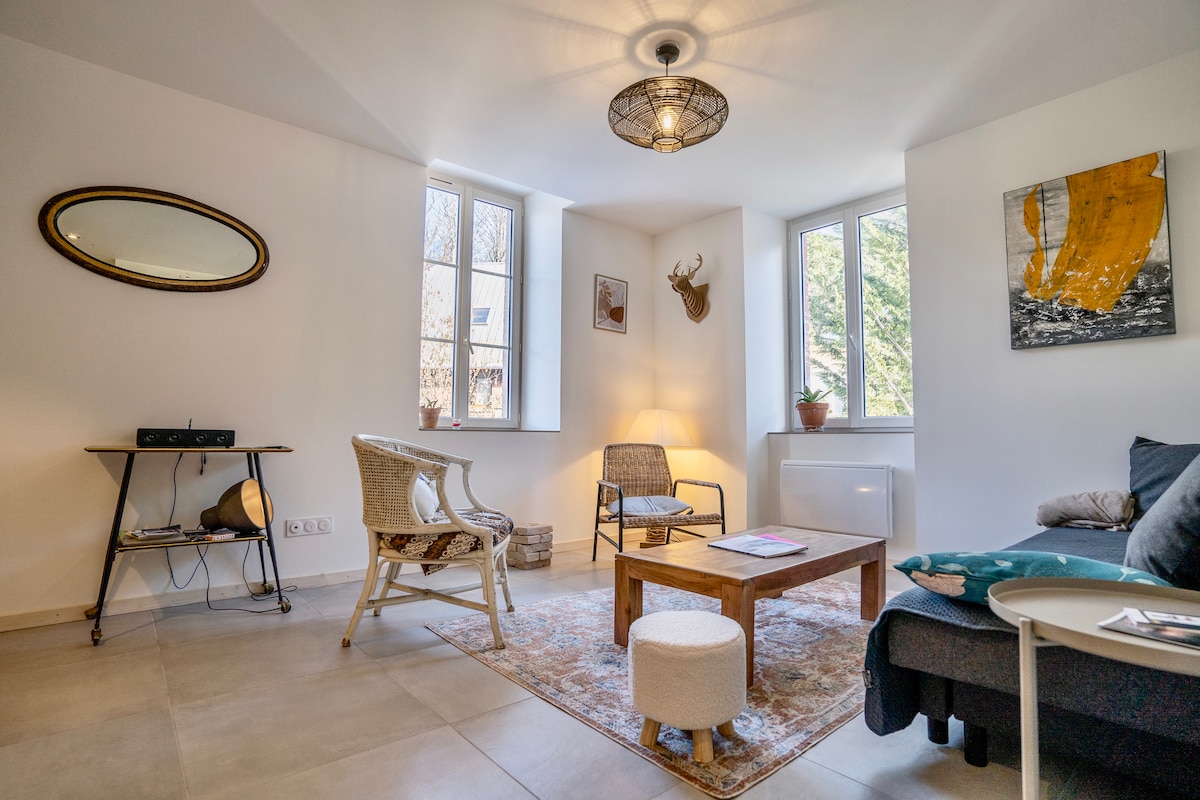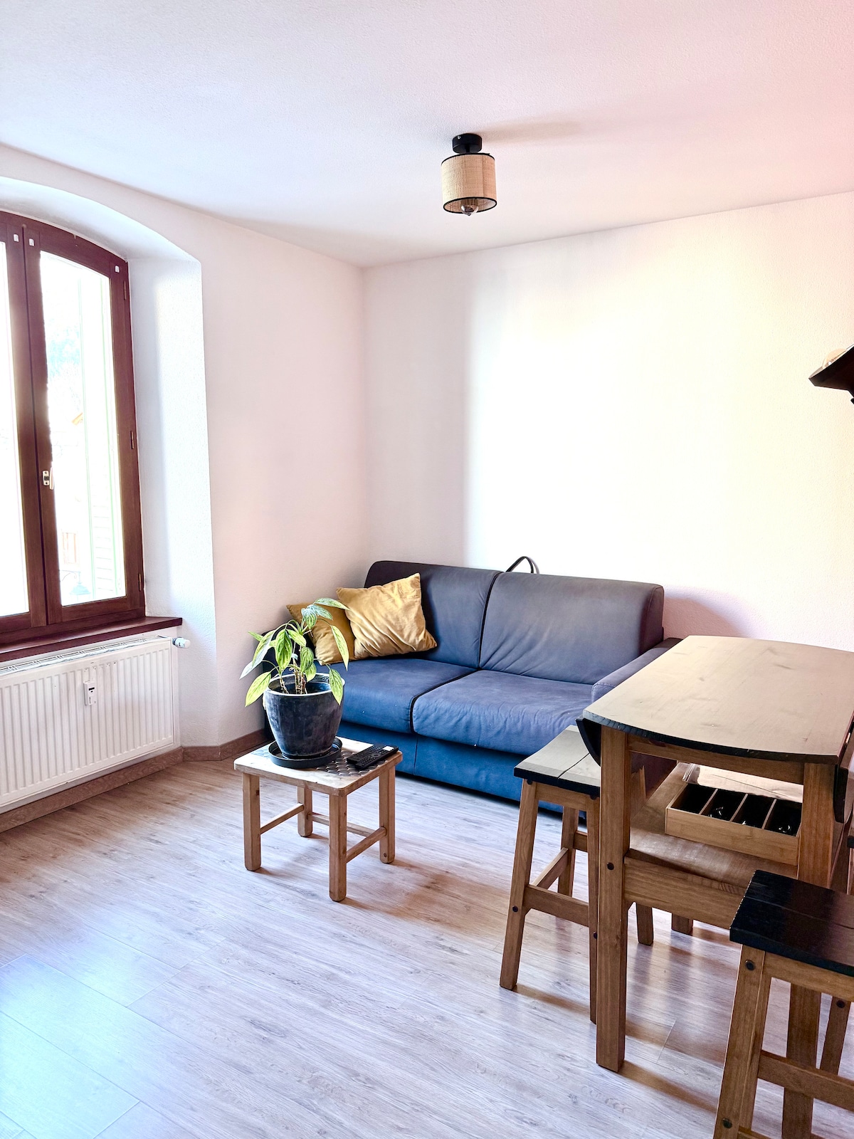 Appartement de 28 m2 entièrement rénové au 1er étage de notre maison dans quartier calme avec terrasse de 18 m² exposée sud, vue dégagée sur les montagnes. 1 pièce avec coin cuisine équipé, salon avec tv, wifi, canapé convertible, 1 chambre avec un lit double (140x190cm) et deux lits superposés (90x190cm). 1 salle de bain avec douche et wc. Logement idéal pour 2, possible jusqu’à 4 personnes. Stationnement sur parking privé. A 900 m du centre ville et gare.