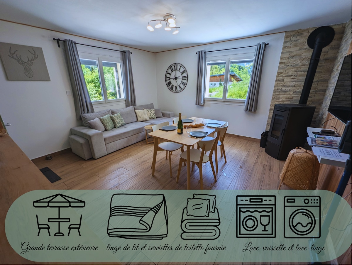 Ambiance chalet à la montagne, idéal pour le ski⛷, les randonnées et le cocooning! Terrasse plein sud été comme hiver, un vrai bonheur! Borne de recharge privée pour véhicules électriques ! Le centre du village est à 7 min à pied et vous offre tous les commerces nécessaires à votre séjour, pas besoin de voiture! Pour les skieurs, le centre nordique et les navettes gratuites pour le ski alpin sont à 4 minutes! La résidence est très calme ainsi que la maison, malgré la mitoyenneté!