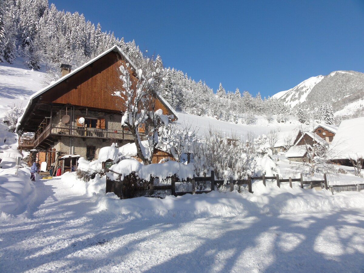 Bienvenue dans notre chalet, construit en 1871 , en lisière de forêt. Déco Montagne, SAUNA privatif , Confort, Poêle à bois, Terrasses , Grand jardin, Hamac, Cabane, Bassins poisson, Poules, Jeux, Pétanque... Un vrai cocon dans hameau authentique, au pied des Aiguilles d'Arves. Ski , luge, raquettes, vélo, vtt, Randonnées, Lacs, Patrimoine, Escalade, Rando-ânes, Accrobranche, Pêche, Tennis, Cinéma, Bowling, ... Station village idéale pour Toute la famille, grand domaine skiable tous niveaux .