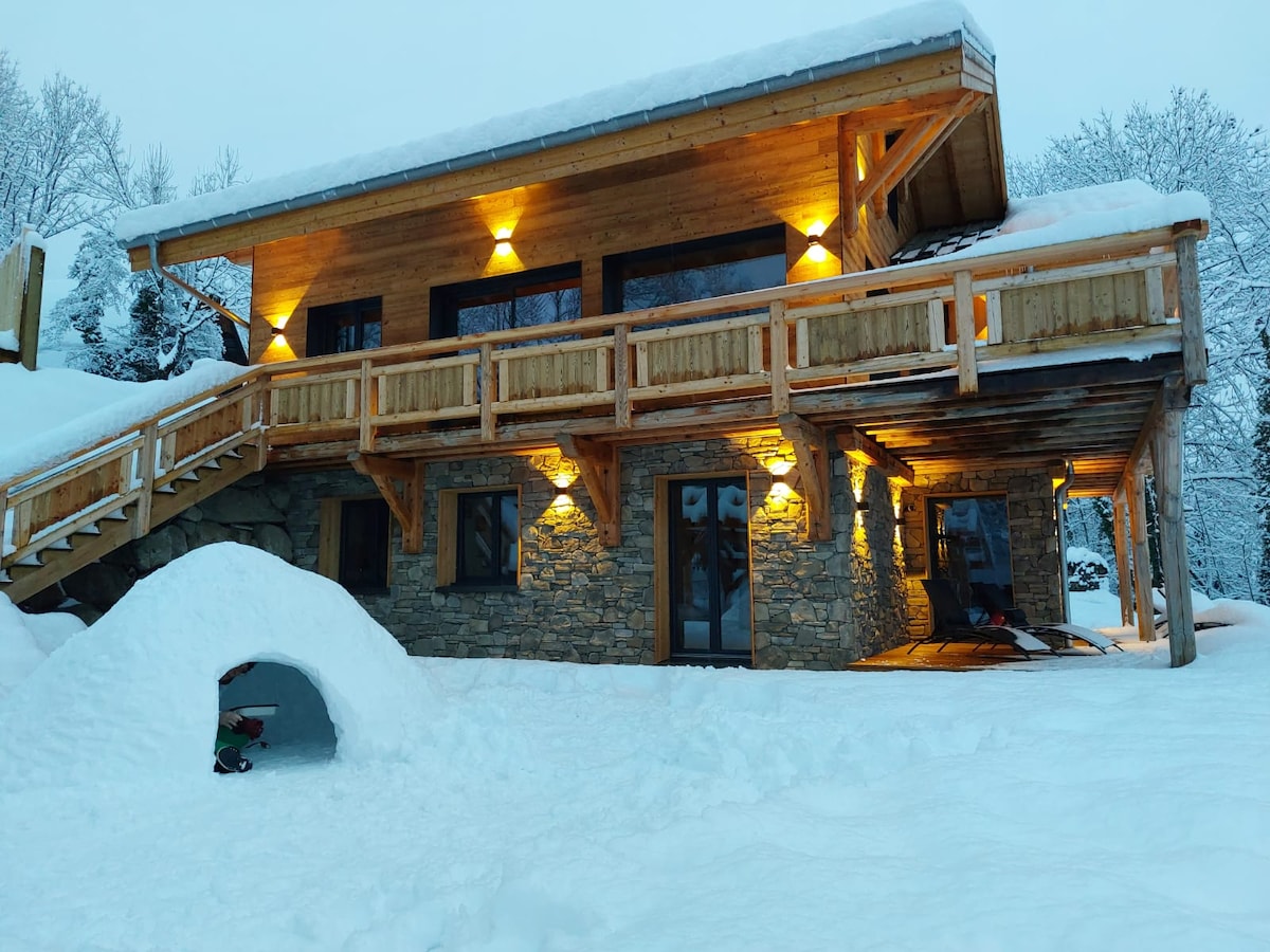 Spacieux chalet 5* de 200m² alliant élégance et raffinement. Réel havre de paix avec splendide vue sur les massifs. Espace détente sport et sauna. Extérieurs conviviaux… Situé à 2,5 km de la station village de Vaujany Alpe d'Huez grand domaine ski. Pour votre confort des casiers à ski avec sèche-chaussures privés sont mis à votre disposition directement sur le quai des remontées mécaniques, une navette gratuite passe à 50m du chalet pour vous déposer au pied des remontées (4min en voiture)