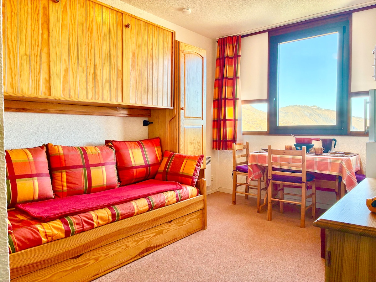 Détente, dépaysement, animations pour toute la famille. Logement au sein de la résidence chalets "Les Alpages du Corbier", Bâtiment A avec vue imprenable sur la montagne. Calme et confortable, 33m2 avec balcon . Piscine chauffée, espace fitness, sauna, restaurant (ouvert du 23/12 au 11/04 & du 01/07 au 01/09). Ménage et draps inclus pour séjour 7 nuits minimum. Station entièrement piétonne, classée famille plus. L'hiver démarrez la journée skis aux pieds ! L'été profitez de nombreux sentiers.