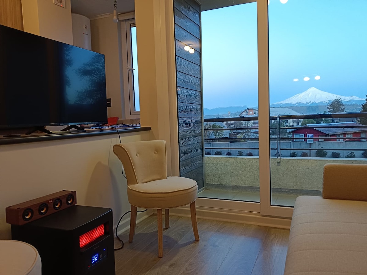 El departamento está hermosamente decorado y tiene un balcón con vista parcial al volcán. 100% Equipado para 2 huéspedes: 🍽️ Cocina full equipada 🏋️ Gimnasio a libre disposición. ☕ Cafetera francesa y galletas biscoff 💻 Wifi y Smart TV 🏊 Piscina, disponible según temporada 👾 Sala de juegos 💡 Atención personalizada y recomendaciones locales Queremos ofrecerte una estadía ✨ 5 estrellas ✨ y que disfrutes al máximo tu tiempo con nosotros!