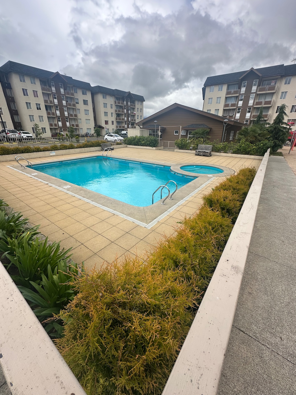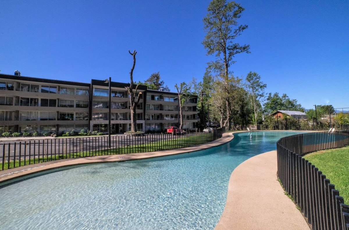 Cozy one-bedroom apartment with en-suite bathroom, living-dining area, and open kitchen, located in a private condo with beautiful gardens. Perfect for 2 guests. Enjoy: 🏊♂️ Pool suitable for kids and adults 🏰 Playground for children 🌲 Club house 🧖♂️ Sauna and hot tub (extra fee) 📍 Ideal location, close to: 🏘️ 5 min from downtown Pucón 🏞️ Beaches ⛷️ 25 min from the ski center ♨️ 40 min from Huife hot springs 🌿 25 min from botanical thermal park 🌄