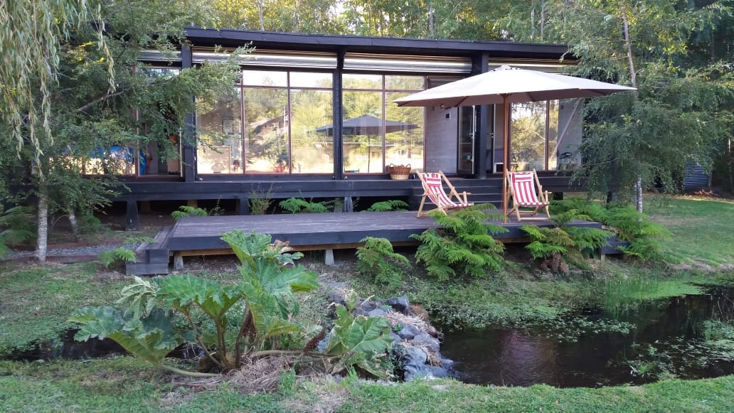 Para una experiencia natural y auténtica en el sur de Chile, a sólo 15 minutos de Villarrica, esta casa está emplazada en medio de un pequeño bosque nativo que bordea el río Pedregoso, e inserta en un campo familiar dedicado a la lecheria y la crianza de ovejas. En la planta alta un dormitorio principal con terraza al volcán Villarrica y un segundo dormitorio con dos camas. En la primera planta, un estar con sofácama de dos plazas, cocina integrada, un baño y otra terraza con magnífica vista.