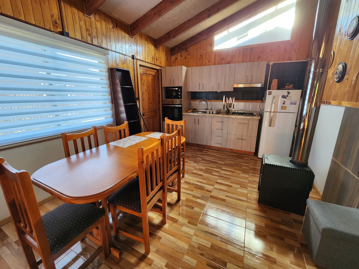 Acogedora cabaña para 4 personas ubicada en la entrada de licanray, cocina completamente equipada con encimera y horno eléctrico, directv, estacionamiento, agua caliente, pancho y parrilla. Te esperamos