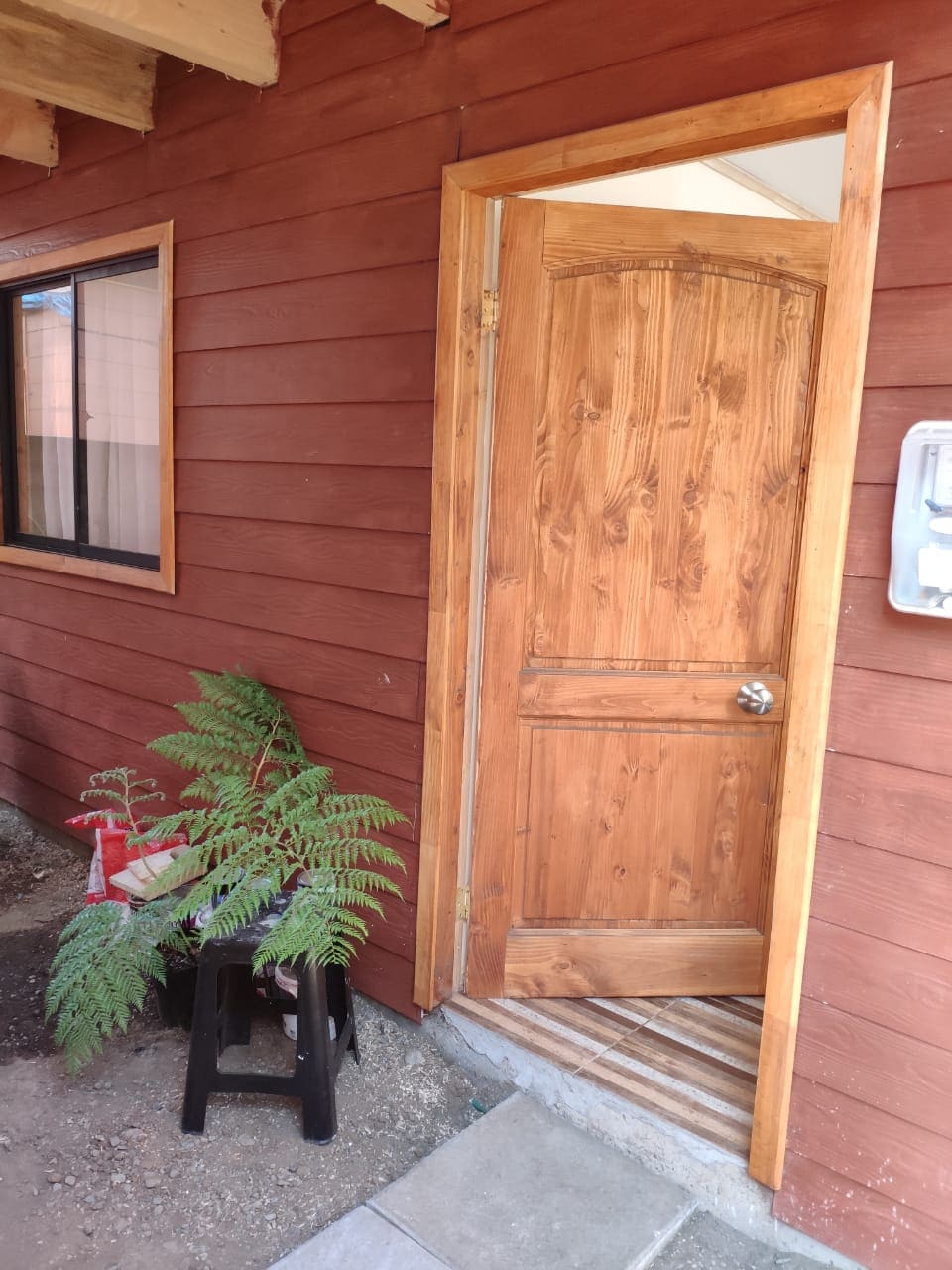 Cabaña para 4 personas rústica con hermosa vista al volcán. Ubicada en sector rural rodeada de naturaleza cercana a ríos, lagos y termas. Lugar tranquilo para pasar vacaciones en familia.. ( alquiler no incluye leña)..