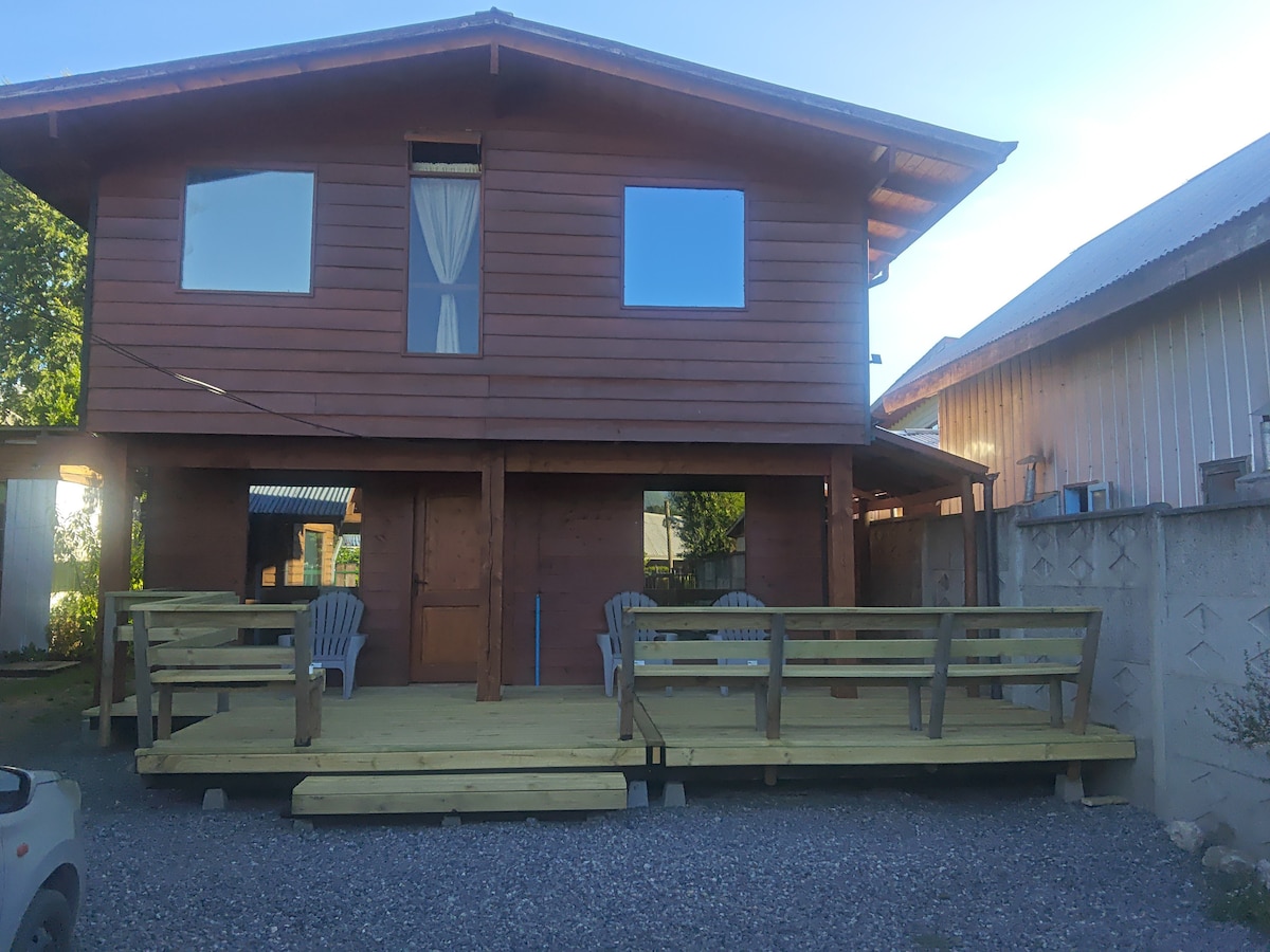 Acogedora cabaña en Pucón con amplia terraza, patio con huerta y estacionamiento privado. Ubicada en un pasaje tranquilo, lejos del ruido nocturno, en punto estratégico cercano a diversas salidas a la naturaleza al mismo tiempo que de los servicios principales del centro de Pucón. La anfitriona, dedicada a la ecología, salud integral y música, te recibirá con calidez y amabilidad, haciendo que te sientas como en casa. Perfecta para quienes buscan un refugio de paz y conexión con la tierra.