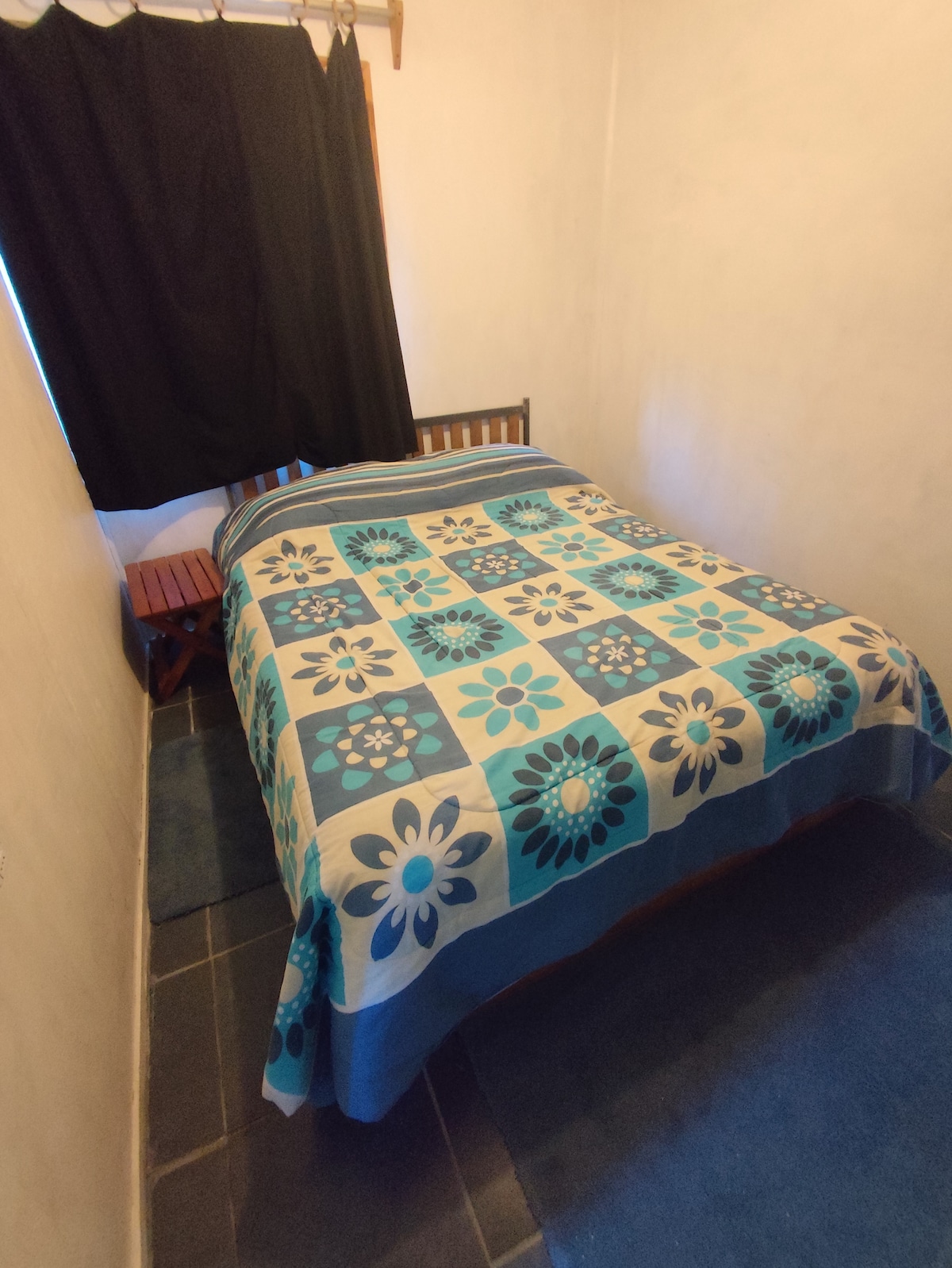 Habitación equipada completa para dos personas en patio trasero. Cocina, lavadora, estacionamiento gratuito, wifi de alta velocidad y parrilla. el lugar es sencillo pero muy acogedor y tranquilo. La ubicación está en altura a 5 minutos del centro en auto y unos 30 caminando. Locomoción publica a la puerta (colectivo N 3) Uber y algunos negocios cercanos para compra de alimentos basicos.