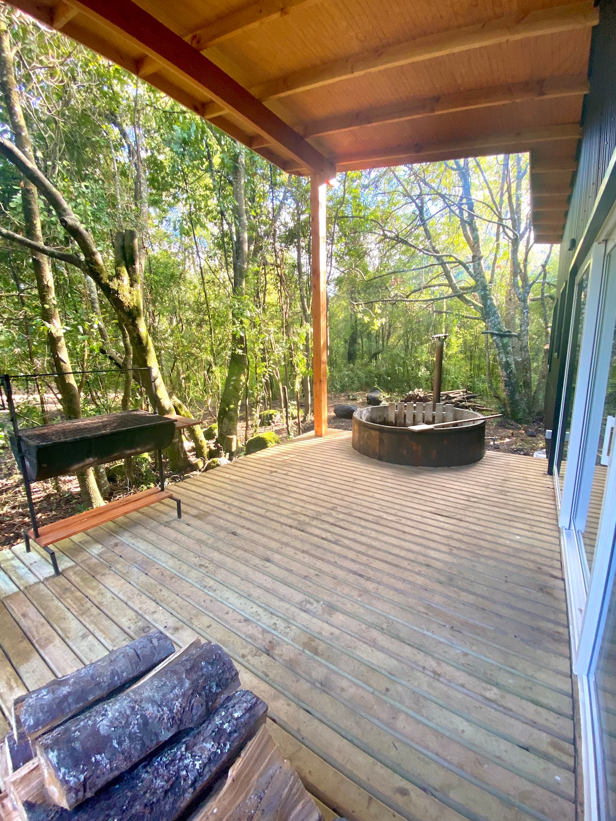 Casa Refugio en el Bosque inserta en un bosque nativo con todos los implementos para vivir una experiencia de descanso y de encuentro con la naturaleza. La casa cuenta además con una tinaja de agua caliente, para disfrutar de las bondades del lugar, en un lugar único. Casa Refugio en el Bosque inserted in a native forest with all the tools to live an experience of rest and encounter with nature. The house also has an exterior hot tub, to enjoy the benefits of the place, in a unique place.
