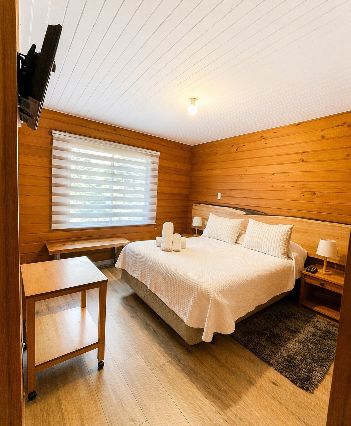 ¿Qué incluye? ° Cama matrimonial ° Baño privado ° Cocina equipada compartida ¿Qué no incluye? ° Desayuno ° TV ° Aseo diario en habitaciones (se puede pedir aparte) Nuestro alojamiento se ubica a minutos del centro de Pucón con acceso directo a ciclo vía y locomoción colectiva, además, cuentas con; estacionamiento y Wifi Beneficios Adicionales • Acceso a terrazas y áreas comunes • 50% de descuento en Mini Golf Pucón