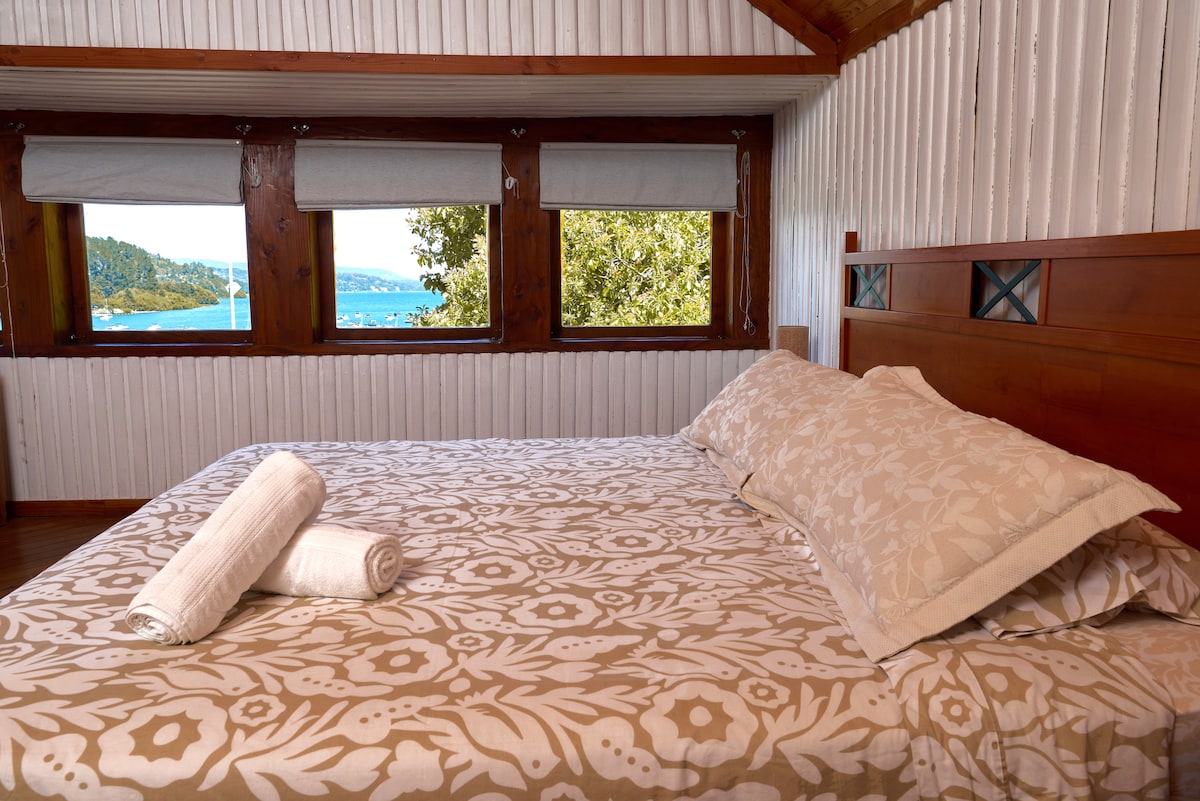 Ubicado en el corazón de la Poza, a metros de la península, un lugar increíble para disfrutar el atardecer y vista al volcán desde nuestra terraza . A dos cuadras de la Plaza de Armas, Restoranes, Pubs, acceso la playa, parque acuático; al frete del embarcadero y costanera. Este Hotel tiene 100 años de historia, está construido con maderas nativas y tejuelas de Alerce; cuenta con habitaciones Dobles, Matrimoniales, Triples, Cuádruples, con baño privado, desayuno y estacionamiento.