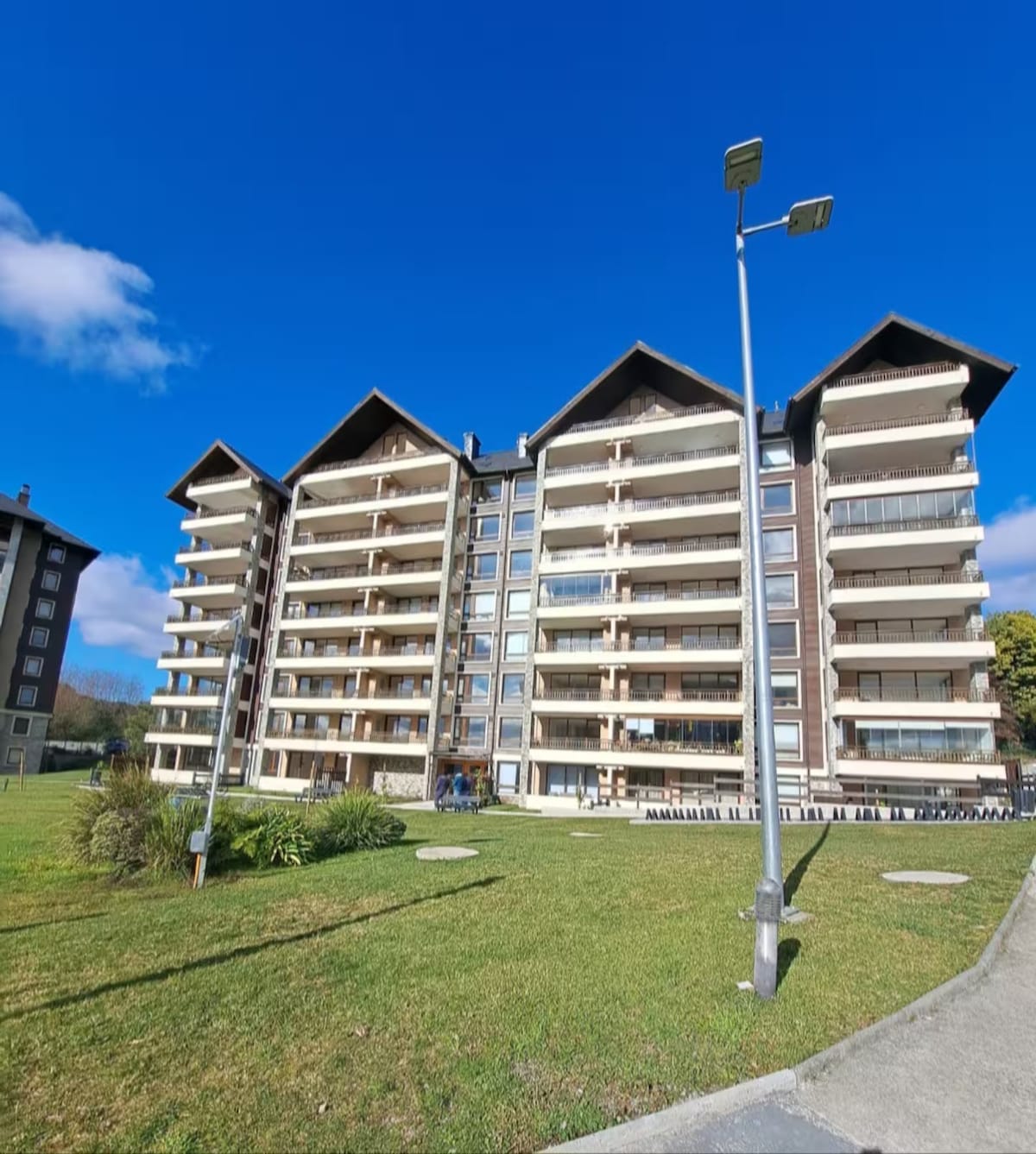 Exclusivo departamento en condominio privado para seis personas, amplio y cómodo, con espectacular vista panorámica al lago Villarrica. El departamento esta full equipado, wifi, netflix, Tv satelital, amplia terraza con parrilla y comedor exterior. El edificio cuenta con piscina, hot tub, quincho, sala de entretenimiento, lavandería, gimnasio, estacionamiento privado y acceso a la playa, con reposeras y sombrillas. Todo a tu servicio para que tu estadía sea tranquila, relajada e inolvidable.