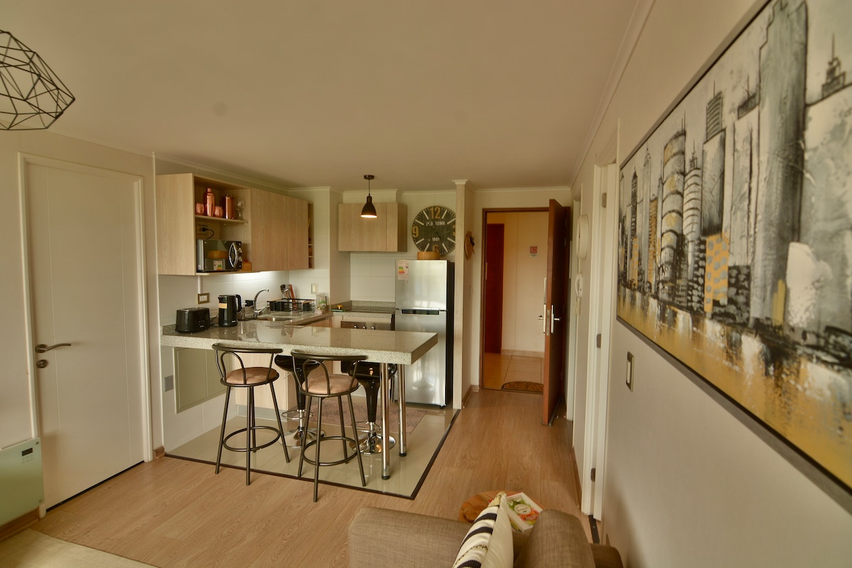 El departamento es como un refugio en la naturaleza de Pucón. Cuenta con todo lo necesario para tu descanso y relajo. 100% Equipado para 2 huéspedes: 🍽️ Cocina full equipada 🏋️ Gimnasio a libre disposición. ☕ Cafetera francesa y galletas biscoff 💻 Wifi y Smart TV 🏊 Piscina, disponible según temporada 👾 Sala de juegos 💡 Atención personalizada y recomendaciones locales Queremos ofrecerte una estadía ✨ 5 estrellas ✨ y que disfrutes al máximo tu estadía con nosotros!