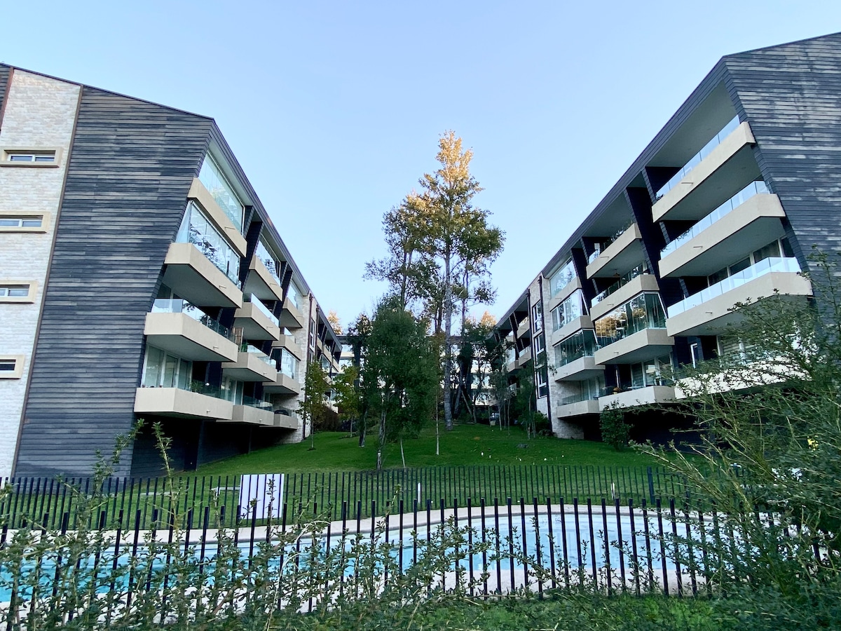 Departamento tipo estudio , en un ambiente tranquilo y natural pero sólo a 5 minutos del centro de Pucón. WIFI fibra óptica 500 megas. Estacionamiento privado, seguridad 24/7, piscina interior y exterior (disponibles según temporada) , quincho, sala de eventos y lavanderia comunitaria Ropa de cama y toallas limpias al momento de tu llegada. Nos preocuparemos de que todo esté listo para tu llegada , solo preocúpate de disfrutar.