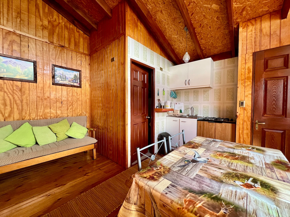 Linda y acogedora cabaña ideal para los que desean desconectarse y a la vez estar cerca de Pucón. Impresionante vista al lago y campo, la cabaña ofrece 1 dormitorio con cama 2 plz, baño completo, open concept living, comedor y cocina., artículos de cocina, ropa de cama y toallas, el tipo de calefacción es a través de estufa a gas y para el dormitorio estufa eléctrica atlantic. Ofrecemos arriendo mensual sujeto a otras condiciones. Tambien tenemos wifi movil.