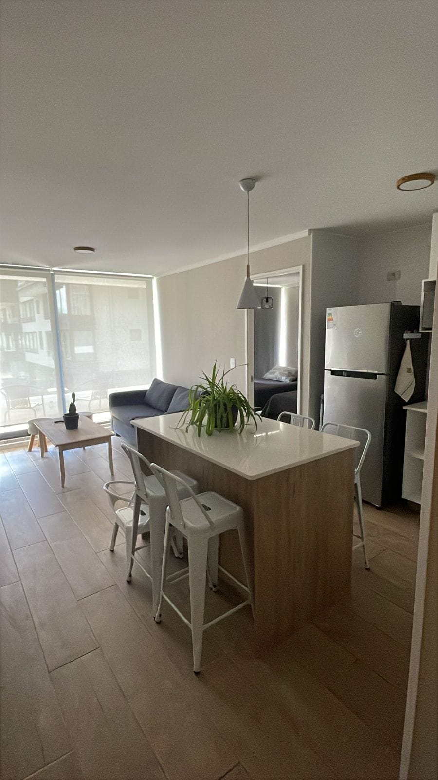 Cozy one-bedroom apartment with en-suite bathroom, living-dining area, and open kitchen, located in a private condo with beautiful gardens. Perfect for 2 guests. Enjoy: 🏊‍♂️ Pool suitable for kids and adults 🏰 Playground for children 🌲 Club house 🧖‍♂️ Sauna and hot tub (extra fee) 📍 Ideal location, close to: 🏘️ 5 min from downtown Pucón 🏞️ Beaches ⛷️ 25 min from the ski center ♨️ 40 min from Huife hot springs 🌿 25 min from botanical thermal park 🌄