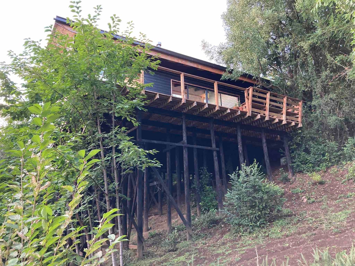 The cabin includes : Bedroom (cama matrimonial, 2 personas) Bathroom Equipped kitchen Mini fridge Main room which includes the kitchen and the living room Sofa convertible (2 person) Dining table w. 4 chairs Smart TV (no channels) Gas oven Wood heating stove Terrace Outdoor bbq pit Start pack included : Bed sheets Towels 1 Toilet paper roll Dish soap Matches 1 Trash bag (Bathroom + Kitchen) Reusable sponge 1 Kitchen towel Handsoap The water is drinkable from the tab.