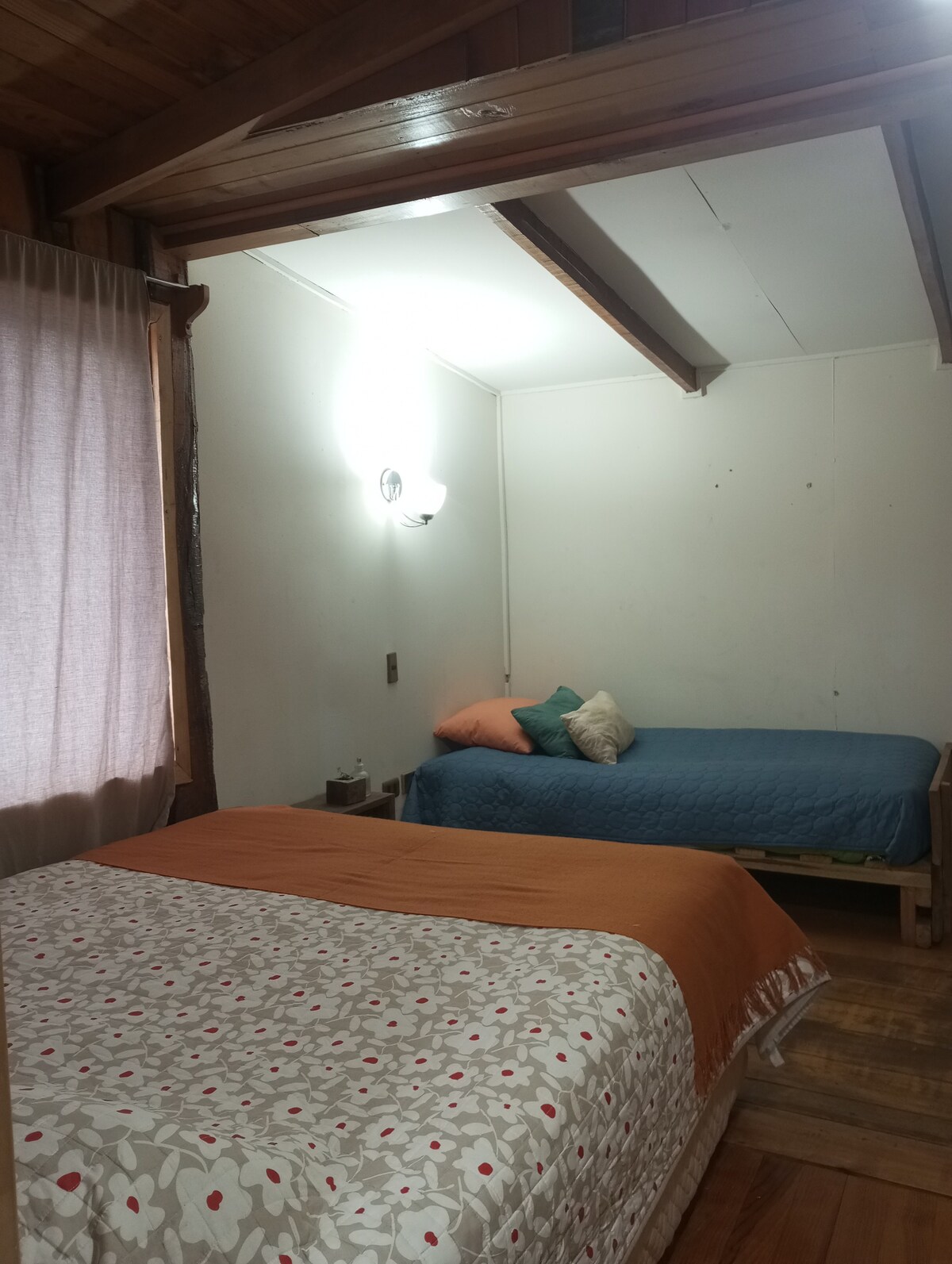 Departamento pequeño independiente para 2 personas ubicación central a 15 min de Villarica o Pucón, cercana a supermercados, farmacias, frutería, playas y lugares turísticos, con estacionamiento propio, cabaña equipada completamente con TV, WIFI, Calefacción a leña y enceres básicos. Ambiente familiar, tranquilo y seguro.