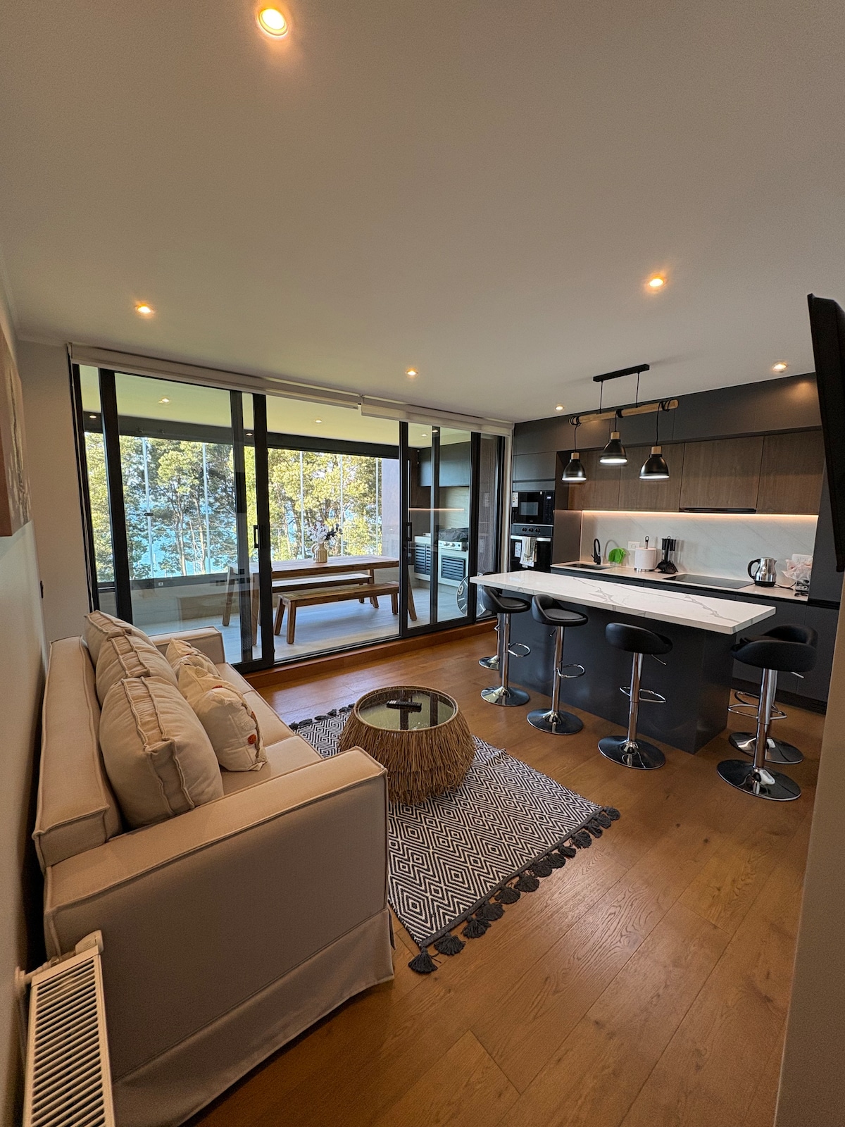 Exclusivo departamento en condominio privado para seis personas, amplio y cómodo, con espectacular vista panorámica al lago Villarrica. El departamento esta full equipado, wifi, netflix, Tv satelital, amplia terraza con parrilla y comedor exterior. El edificio cuenta con piscina, hot tub, quincho, sala de entretenimiento, lavandería, gimnasio, estacionamiento privado y acceso a la playa, con reposeras y sombrillas. Todo a tu servicio para que tu estadía sea tranquila, relajada e inolvidable.