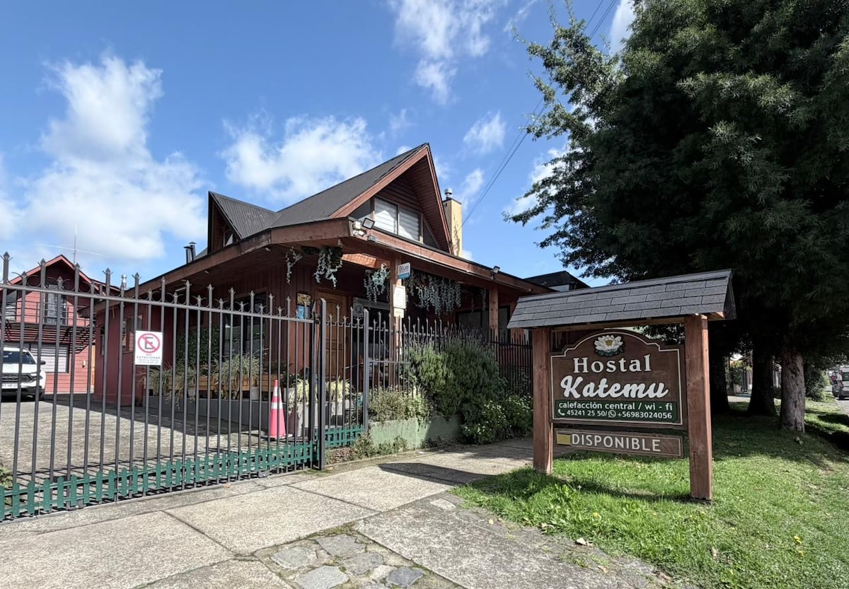 Hostal Katemu es un acogedor alojamiento familiar en Villarrica, ubicado a solo una cuadra del lago. Ofrecemos 4 habitaciones con baño privado, calefacción central, WiFi, TV con Roku y desayuno incluido. Contamos con atención cercana y ambiente tranquilo, ideal para descansar. También tenemos cabaña pet friendly y estacionamiento sujeto a disponibilidad. Recibimos reservas desde una noche. Perfecto para turistas y empresas. 🌸🏡