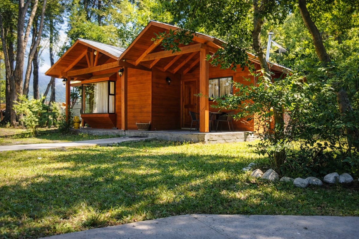 Es un espacio con la virtud del campo, y la cercanía a 2km de la ciudad de Pucón, a sus actividades y servicios, cercano al río Trancura, a termas, al Volcán Villarrica y su lago, posee vista preciosa al Parque Nacional Villarrica. Es un terreno plano con bosque en el cual se construyeron 2 cabañas para ir en familia, en grupo de 4 y 5 personas, cada una de las cabañas cuenta con privacidad y distancia entre ellas. Son cabañas de madera, con diseño exclusivo, combinan lo moderno y lo rústico.