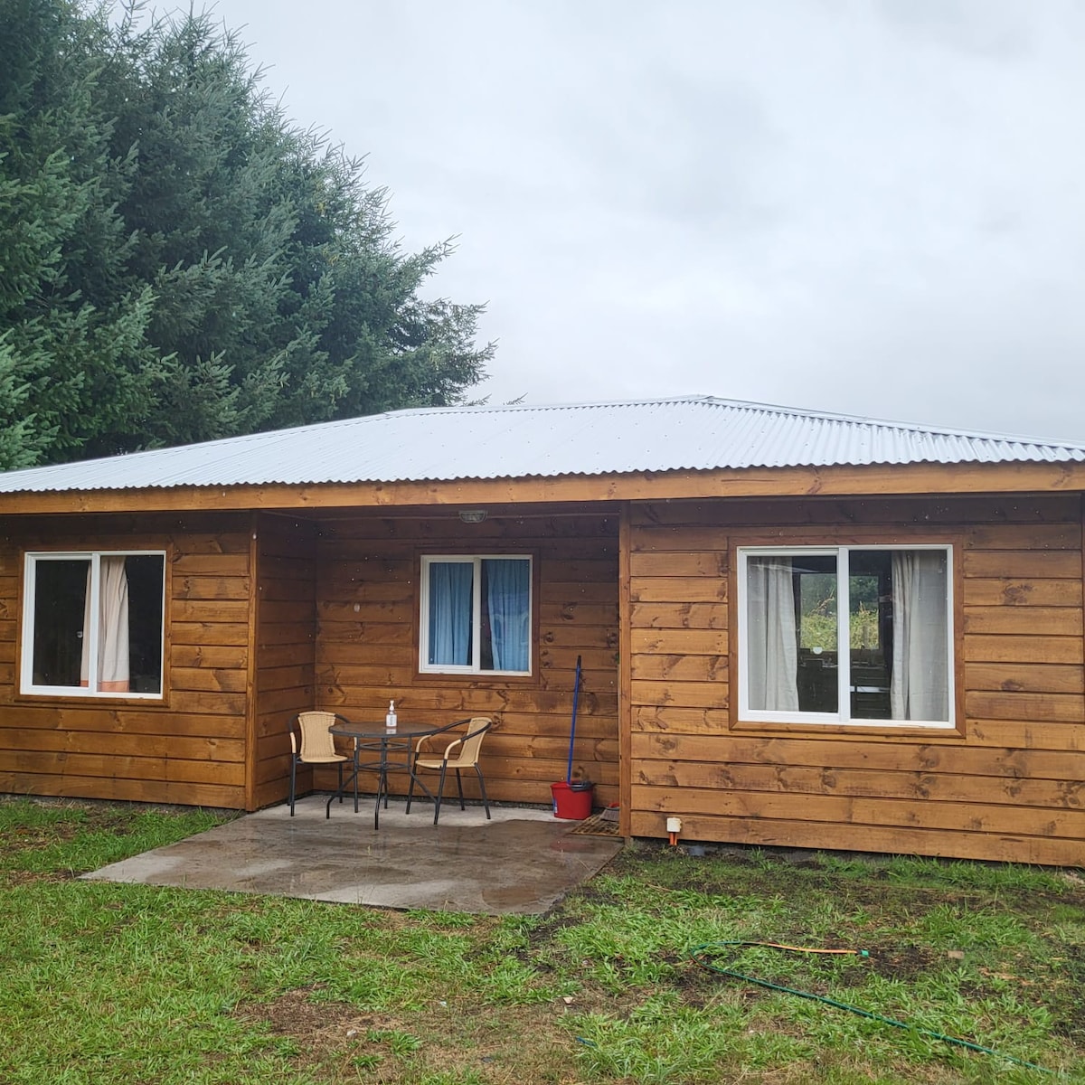 Cabaña en el sector de Chesque alto. Las cabañas están dentro de un campo de 40 hectáreas a las orillas del Rio Chesque. Los visitantes podrán recorrer el campo. Además de atractivos naturales como: lagunas con truchas, senderos, rio y cascada. Las cabañas es de estilo rustico y se encuentra frente al rio con acceso a un posón, cuenta con parilla para hacer asado en el exterior, terraza y tinaja, amplios sectores para caminar, jugar, ver aves, etc. El acceso es para vehículos altos.