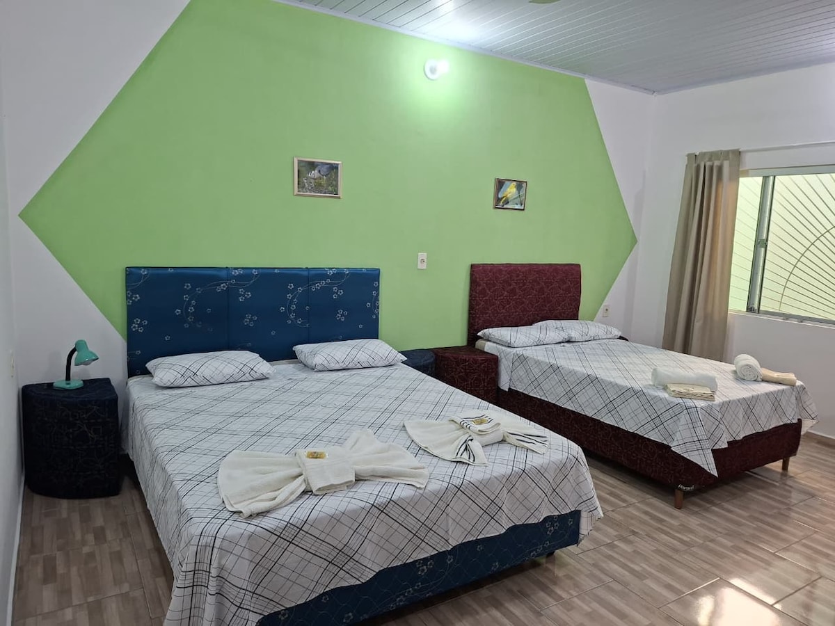 Desconecta de tus preocupaciones en este espacio amplio y sereno y disfruta de la increíble piscina en un ambiente campestre-chic, a pasos del centro de la ciudad. La vista del precioso Cerro Ybyturuzu y el ambiente tranquilo junto con el rápido acceso al centro de la ciudad harán de tu estadía una experiencia muy grata. Nuestra casa tiene dos habitaciones con baño privado, una cocina equipada, una larga galería ideal para relajarse en cualquier estación y una gran pileta como postal del jardín.