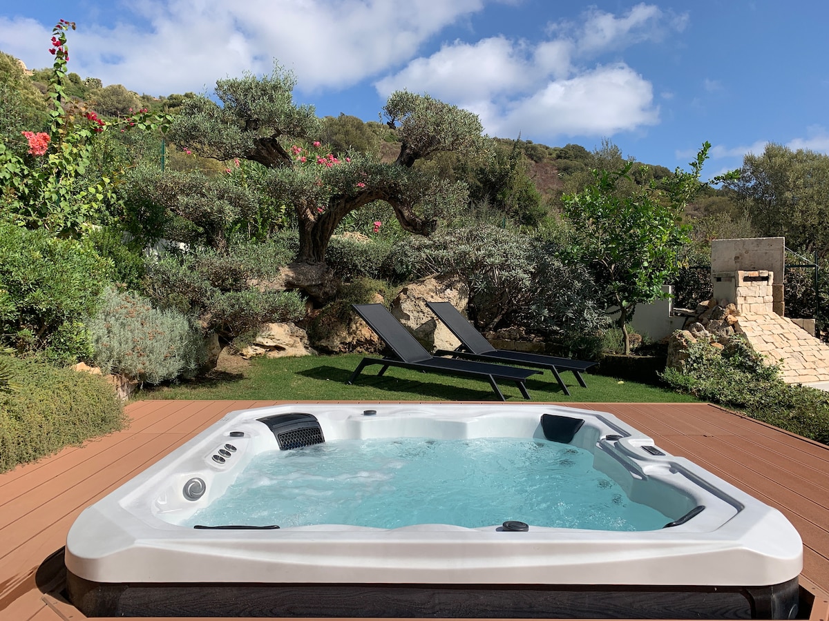 Located between the village boarder and the pure Mediterranean scrub, Casa Edhen, newly and luxuriously finished, is in perfect connection with nature. The Jacuzzi in the artistic garden adds value to the place. The accommodation offers 2 bedrooms and 2 bathrooms, A/C, smart TV, free Wi-Fi, and a fully equipped kitchen. The outdoor table and sun loungers provide the opportunity for an outdoor vacation, a short distance from the beaches and the historic center of Villasimius.Private parking