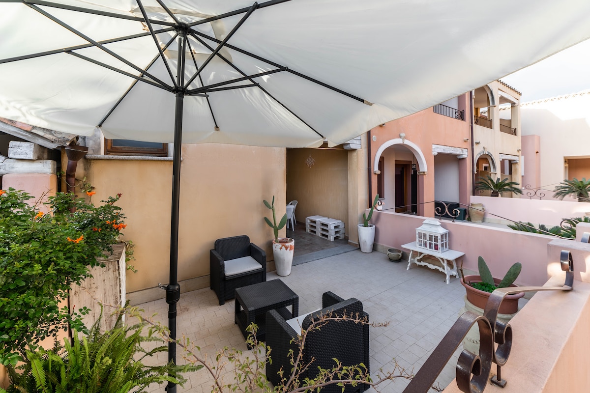 Terraced house ideal for holidays and relaxation. The house is arranged as follows: double bedroom, large living room with kitchenette and sofa bed for one and a half, bathroom and terrace with awning ideal for breakfast and lunch, private parking. The apartment is located on the first and last floor, with an independent entrance, well furnished, has a TV, microwave, coffee machine and wifi.