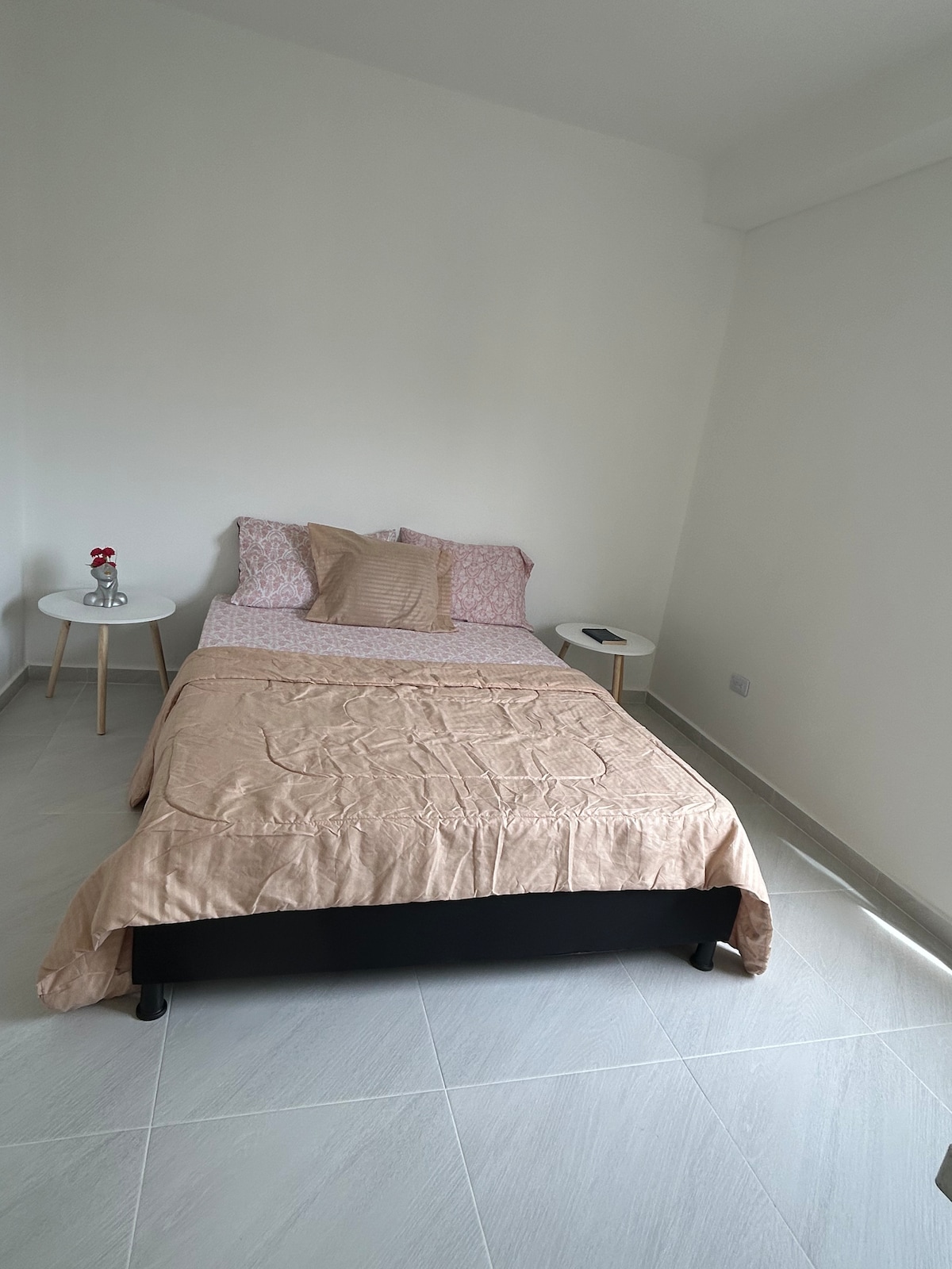 Hermoso apartamento de 3 habitaciones ubicado en el quinto piso de la torre (sin ascensor), cuenta con tres habitaciones dos con camas dobles y una sencilla, ideal para estadías familiares y empresariales, el conjunto cuenta con hermosas zonas sociales y piscina la cual pueden ser disfrutadas por nuestros huéspedes, el conjunto de encuentra rodeado de comercio y buenas vías de acceso, con el centro comercial hacienda Rosablanca a dos cuadras y rodeado de senderos peatonales.
